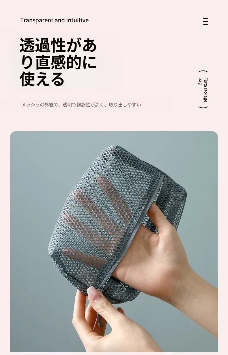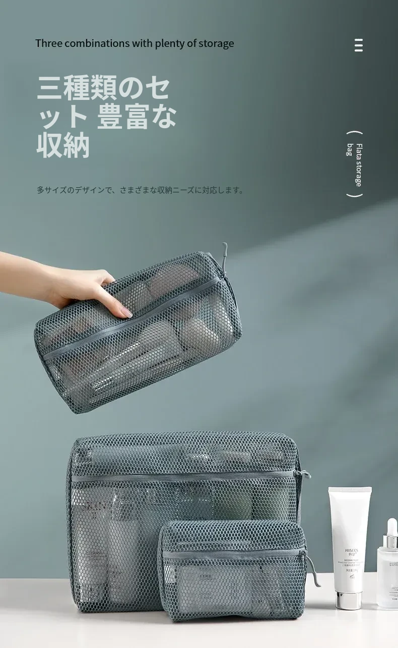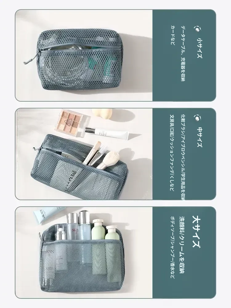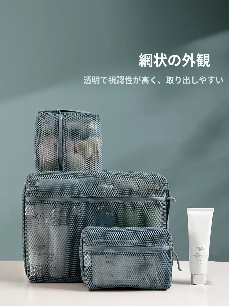 FaSoLa 大容量トラベル収納ポーチ - 透明メッシュデザインで通気性抜群!出張やホテル滞在に最適な洗面用具バッグ。整理整頓も簡単で、持ち運びも便利です!