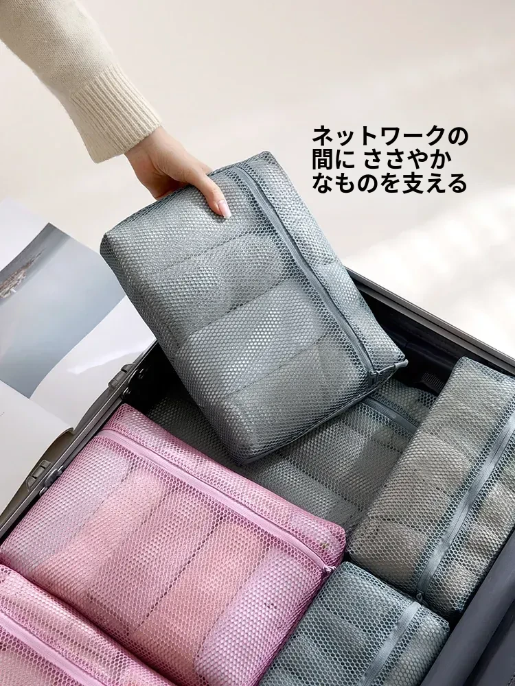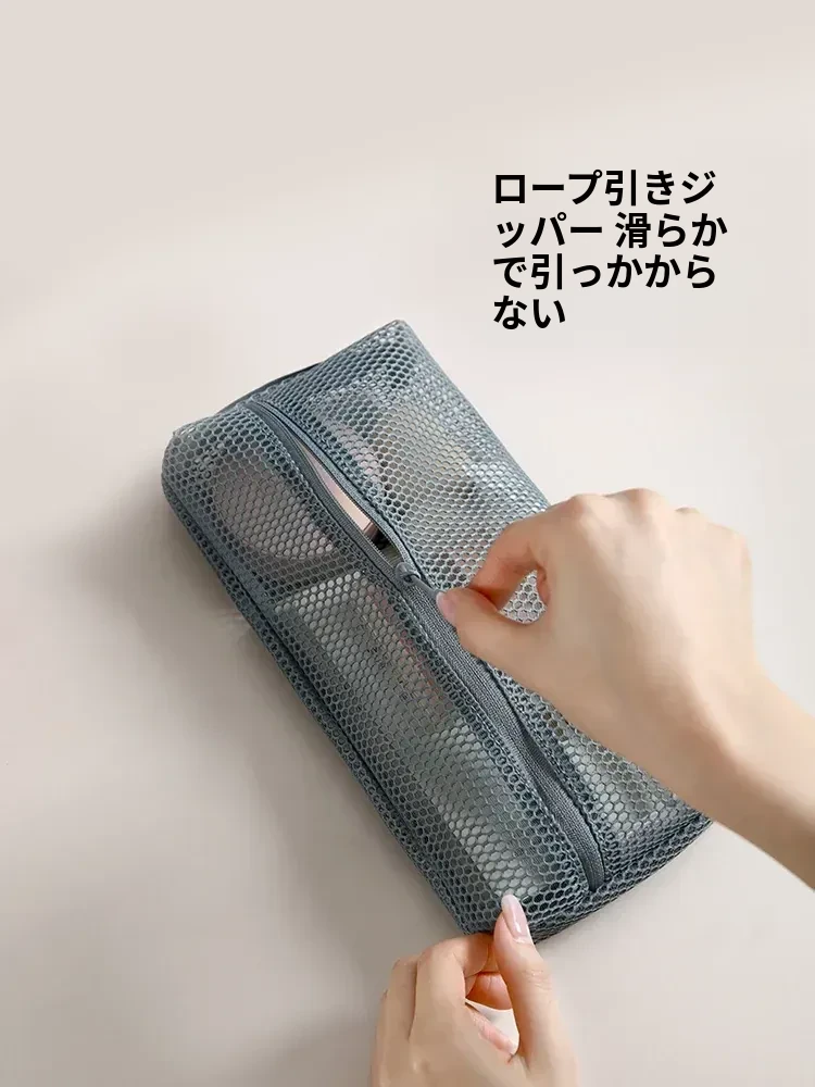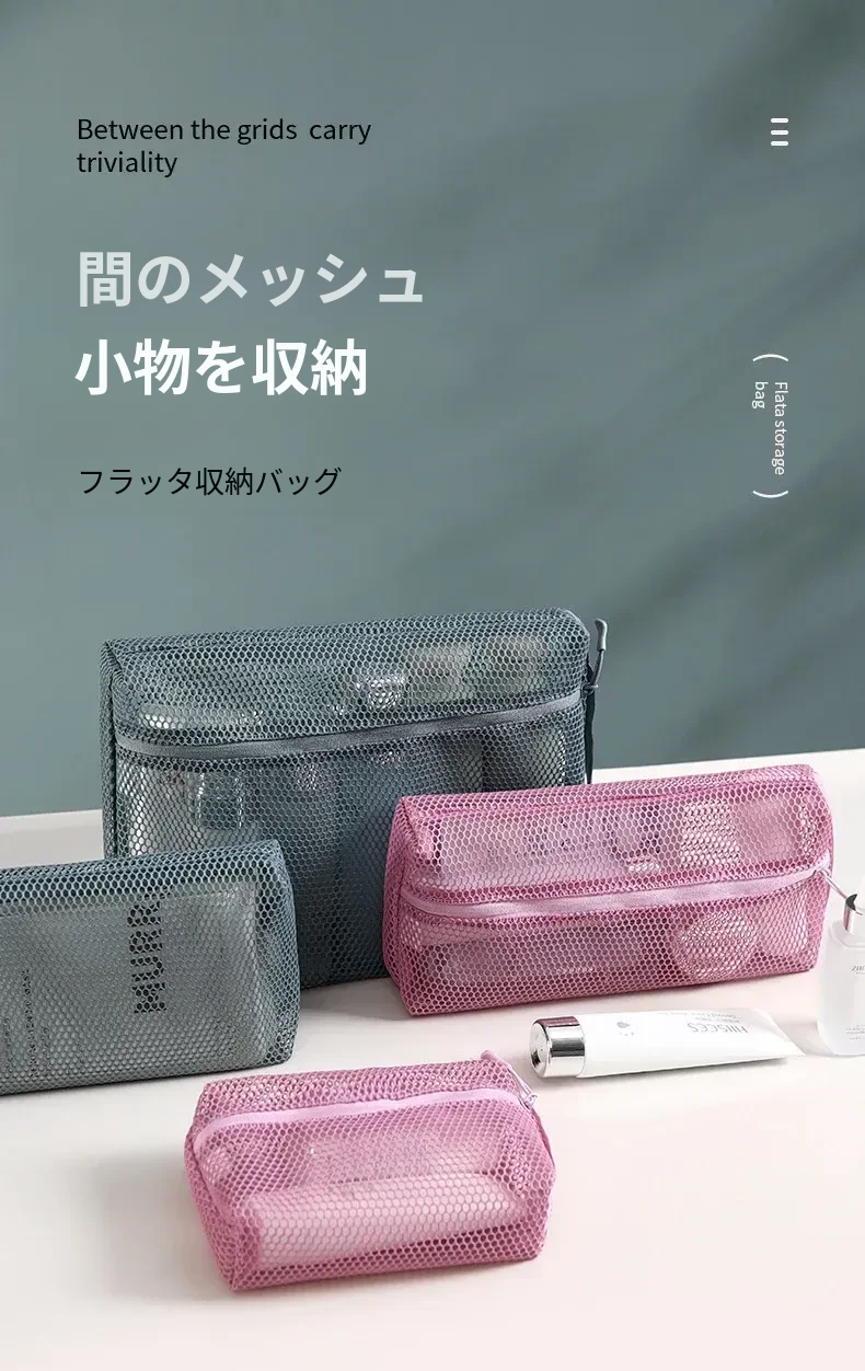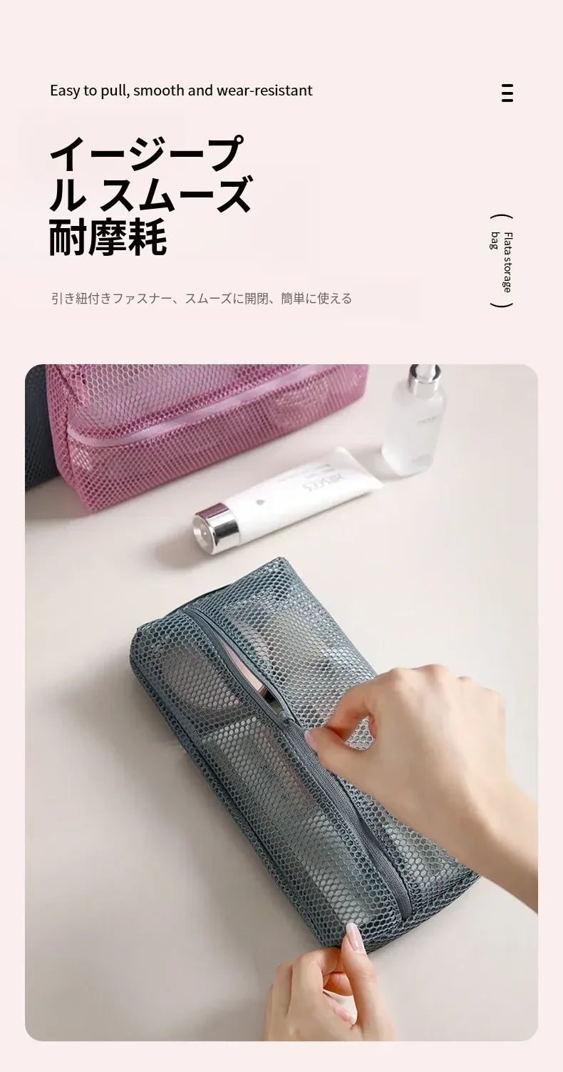 FaSoLa 大容量トラベル収納ポーチ - 透明メッシュデザインで通気性抜群!出張やホテル滞在に最適な洗面用具バッグ。整理整頓も簡単で、持ち運びも便利です!