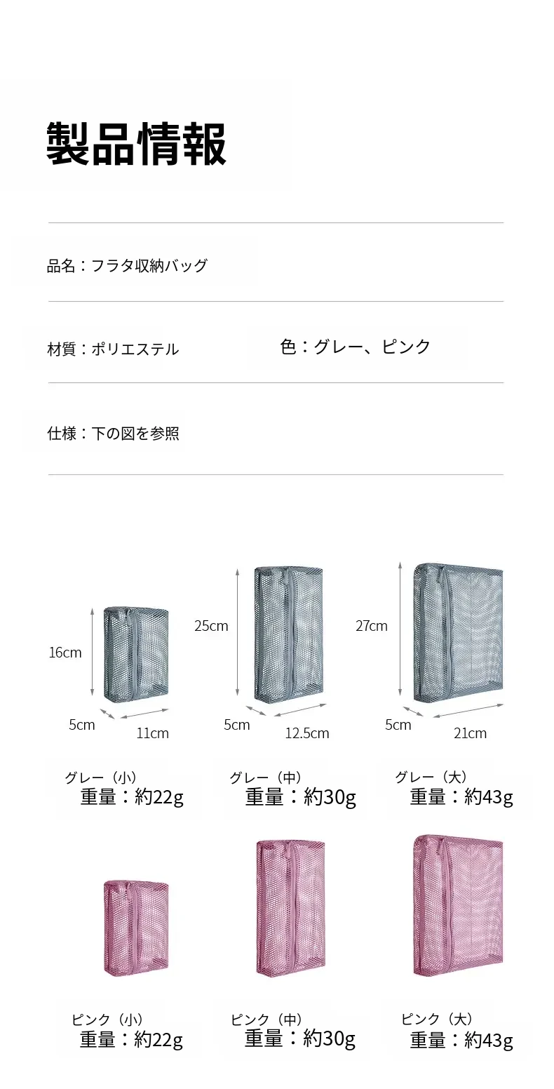 収納バッグ-ピンク(大サイズ+小サイズ)