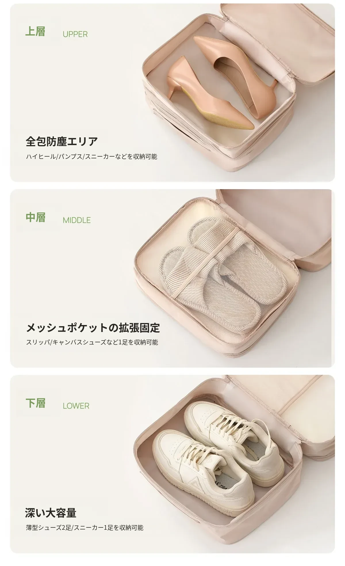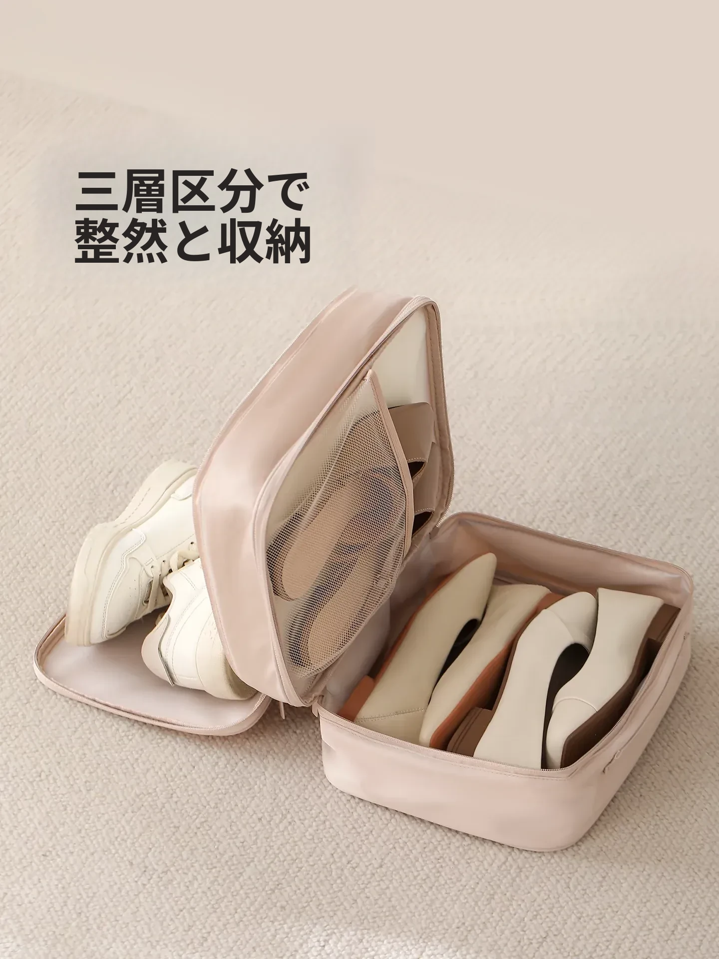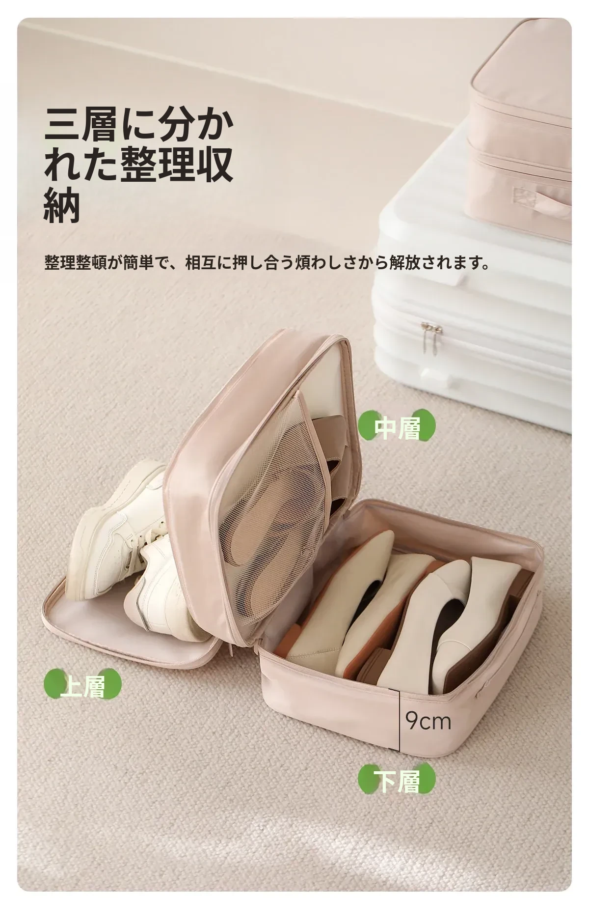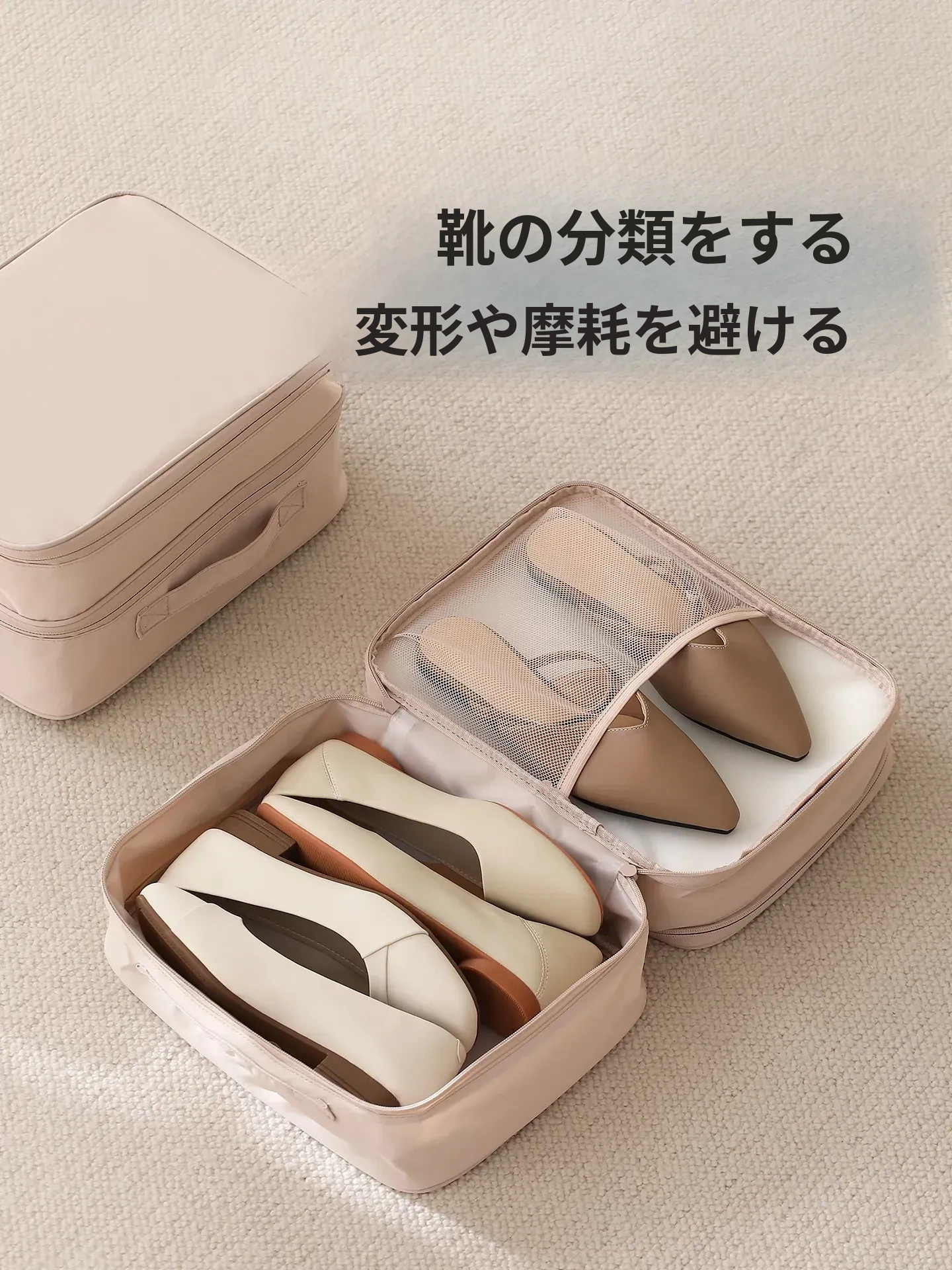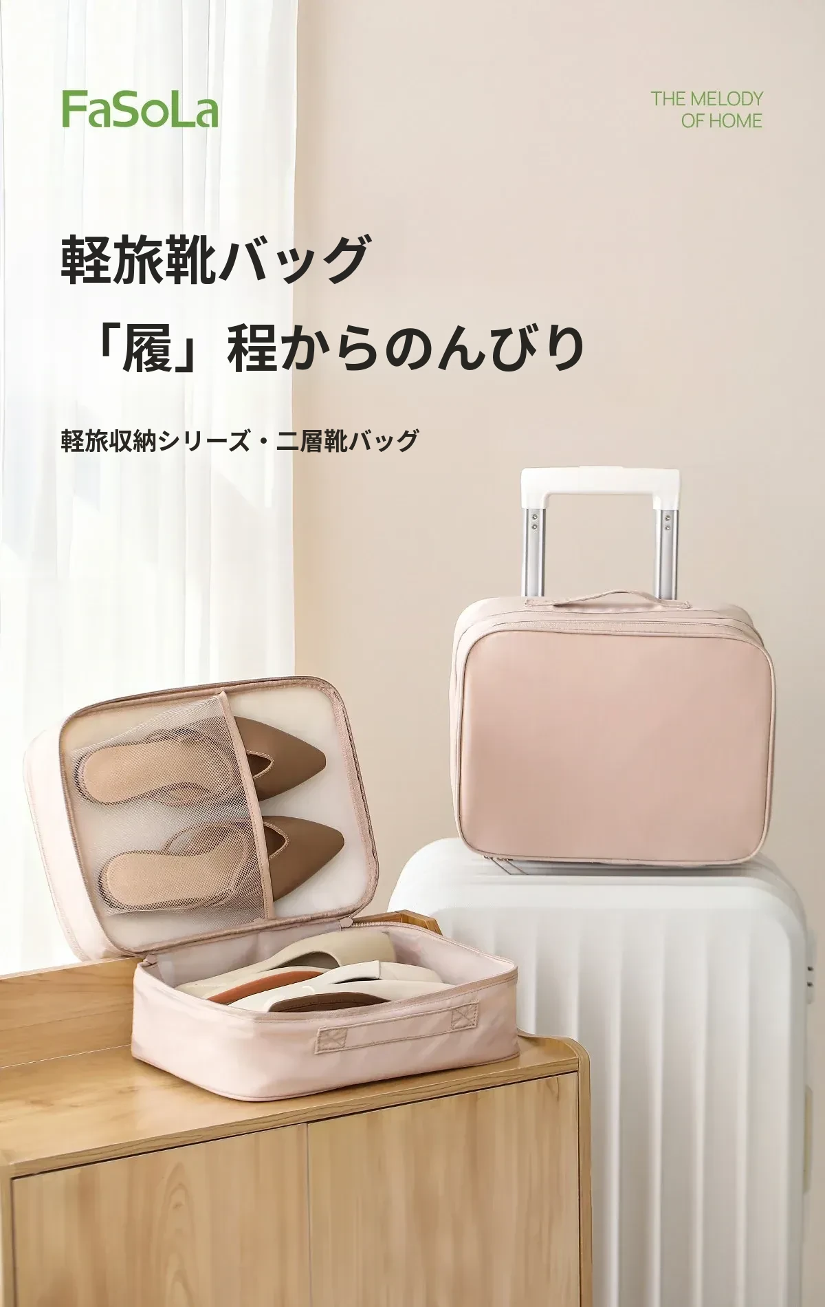 FaSoLa 旅行用便利シューズ収納バッグ - 出張や旅行に最適なシューズケース!靴の整理整頓が簡単にできる魔法の収納ボックス。あなたの靴をスタイリッシュに保ち、旅をもっと快適に!