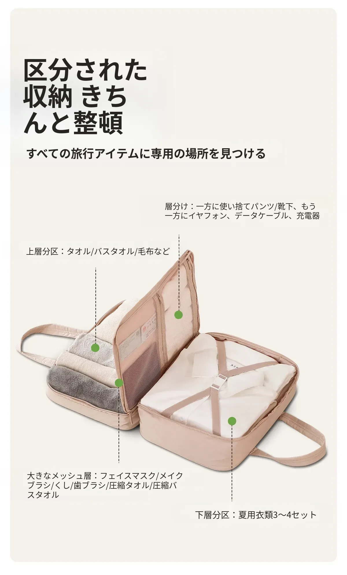 FaSoLa大容量旅行用手提収納バッグ - スーツケース用衣類・下着整理ポーチ!出張や旅行に最適な便利なアイテムで、荷物がスッキリ整理できます!
