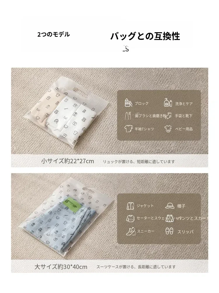 FaSoLa 旅行収納バッグ|衣服・下着・靴もスッキリ整理!密封タイプで匂いもシャットアウト!スーツケースやマザーズバッグに最適!旅行や出産準備に欠かせない便利アイテム!