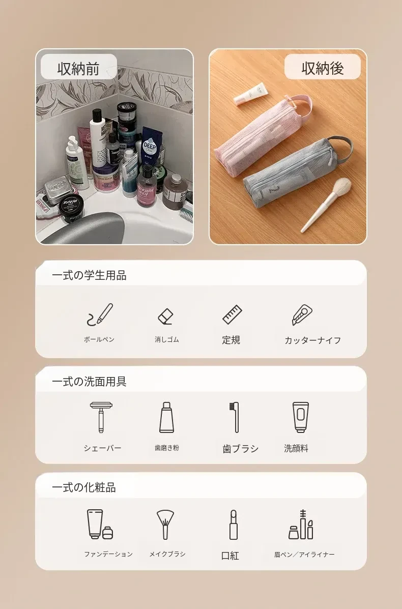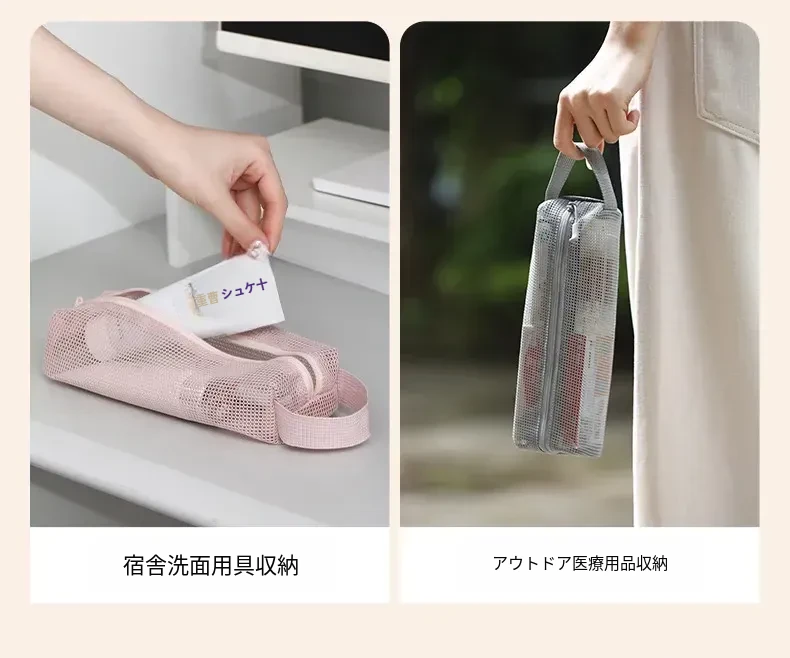 FaSoLa 旅行用透明メッシュ洗面ポーチ - 男女兼用のコンパクトな化粧ポーチ、出張や旅行に最適、便利でスタイリッシュな収納バッグ!