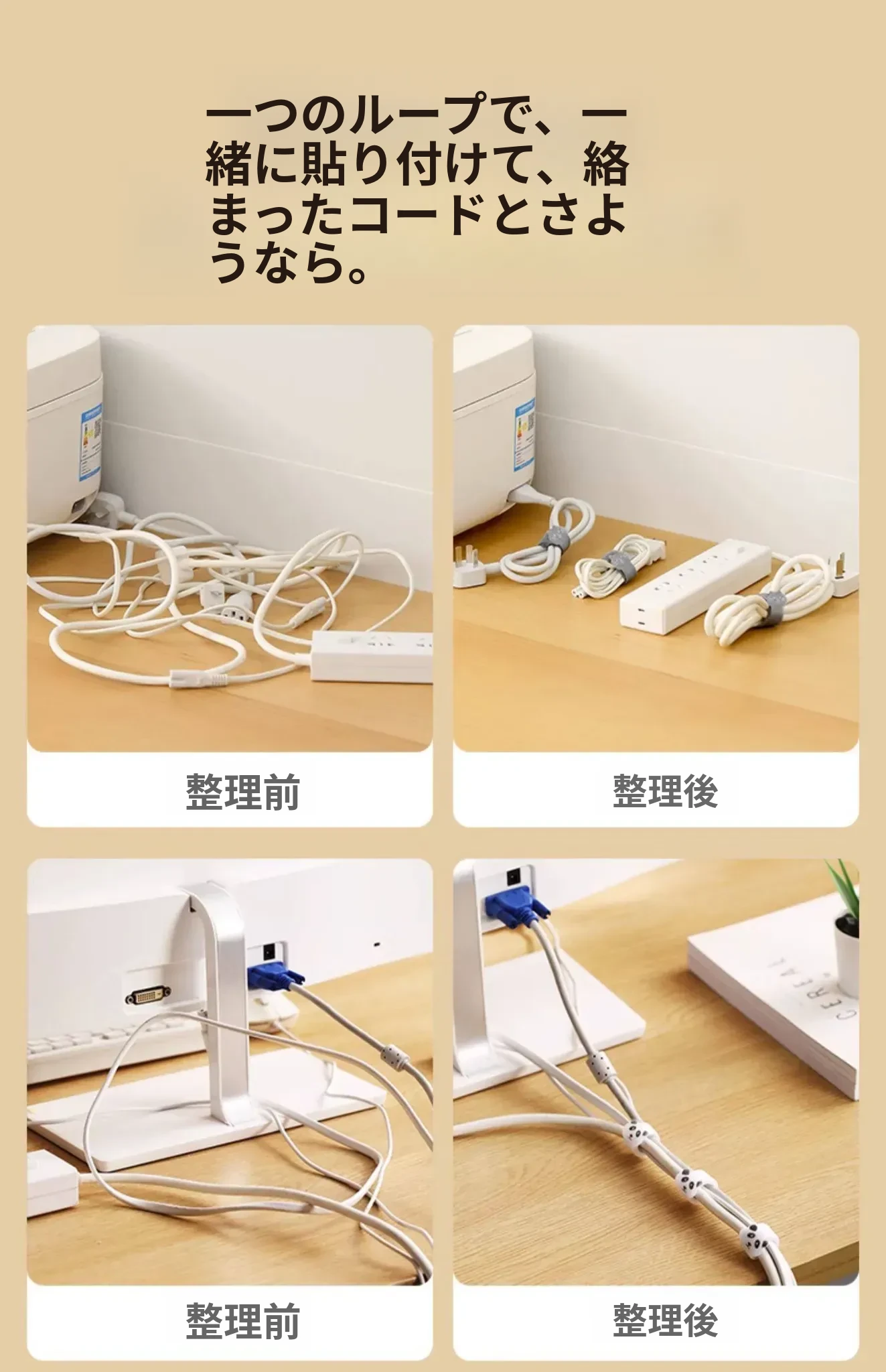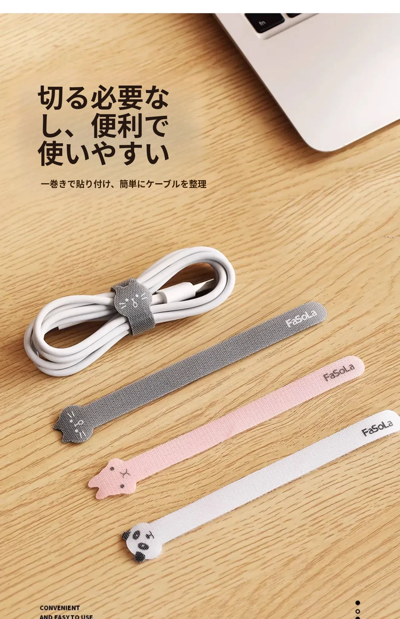 FaSoLaデータケーブル整理マジックテープバンド - パソコン充電ケーブルの快適整理!デスク周りをスッキリ整頓、絡まりを防ぎ、効率的な作業環境を実現します。