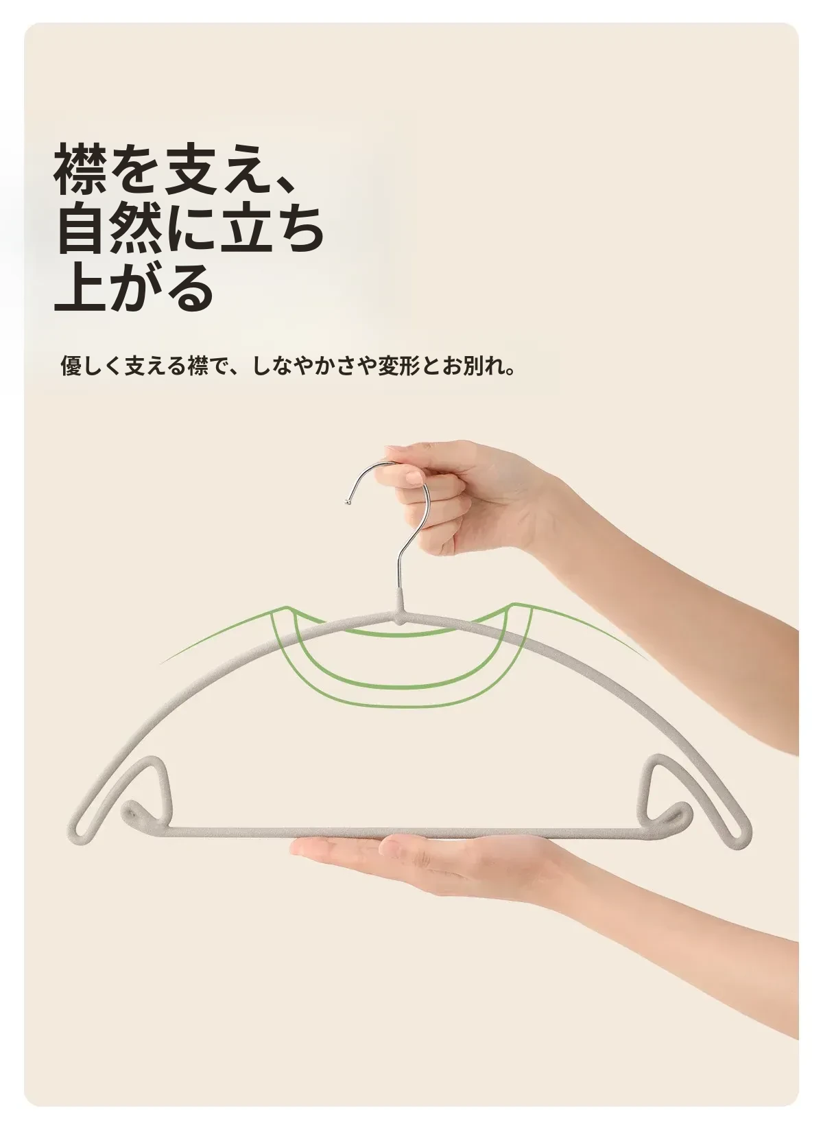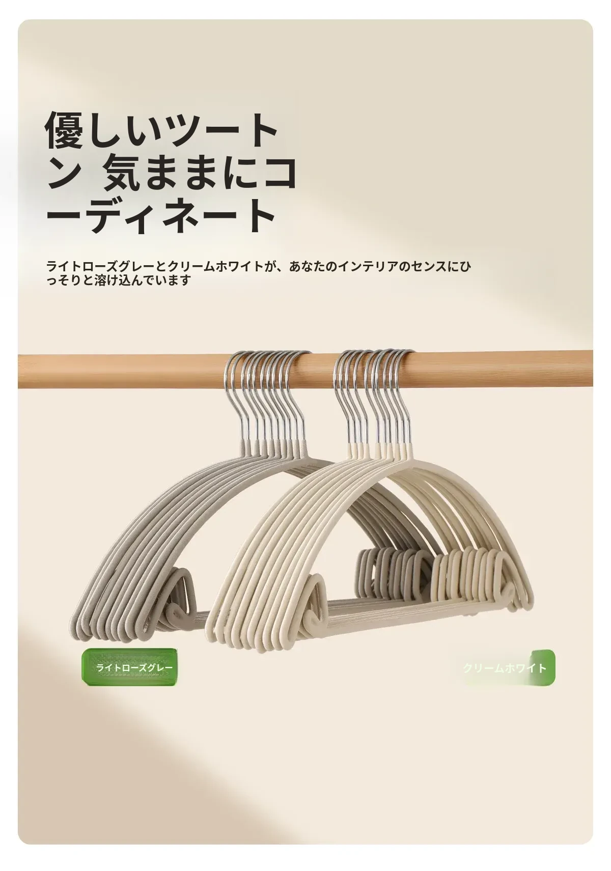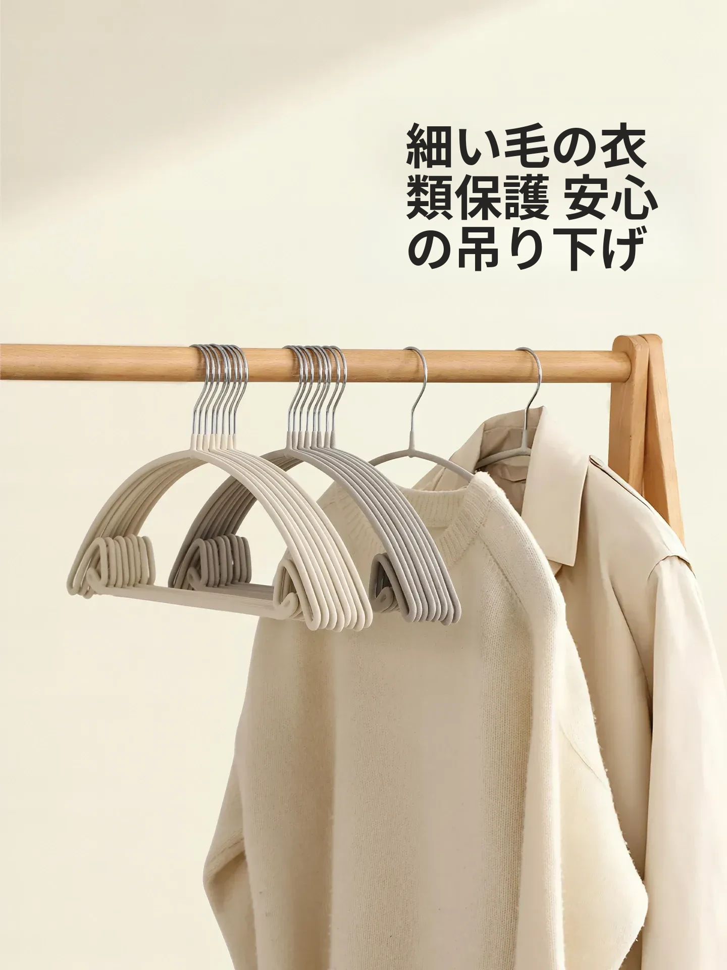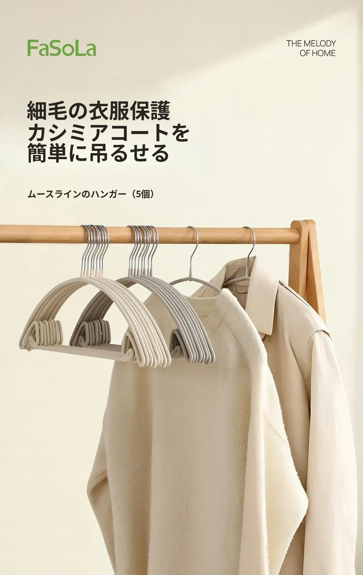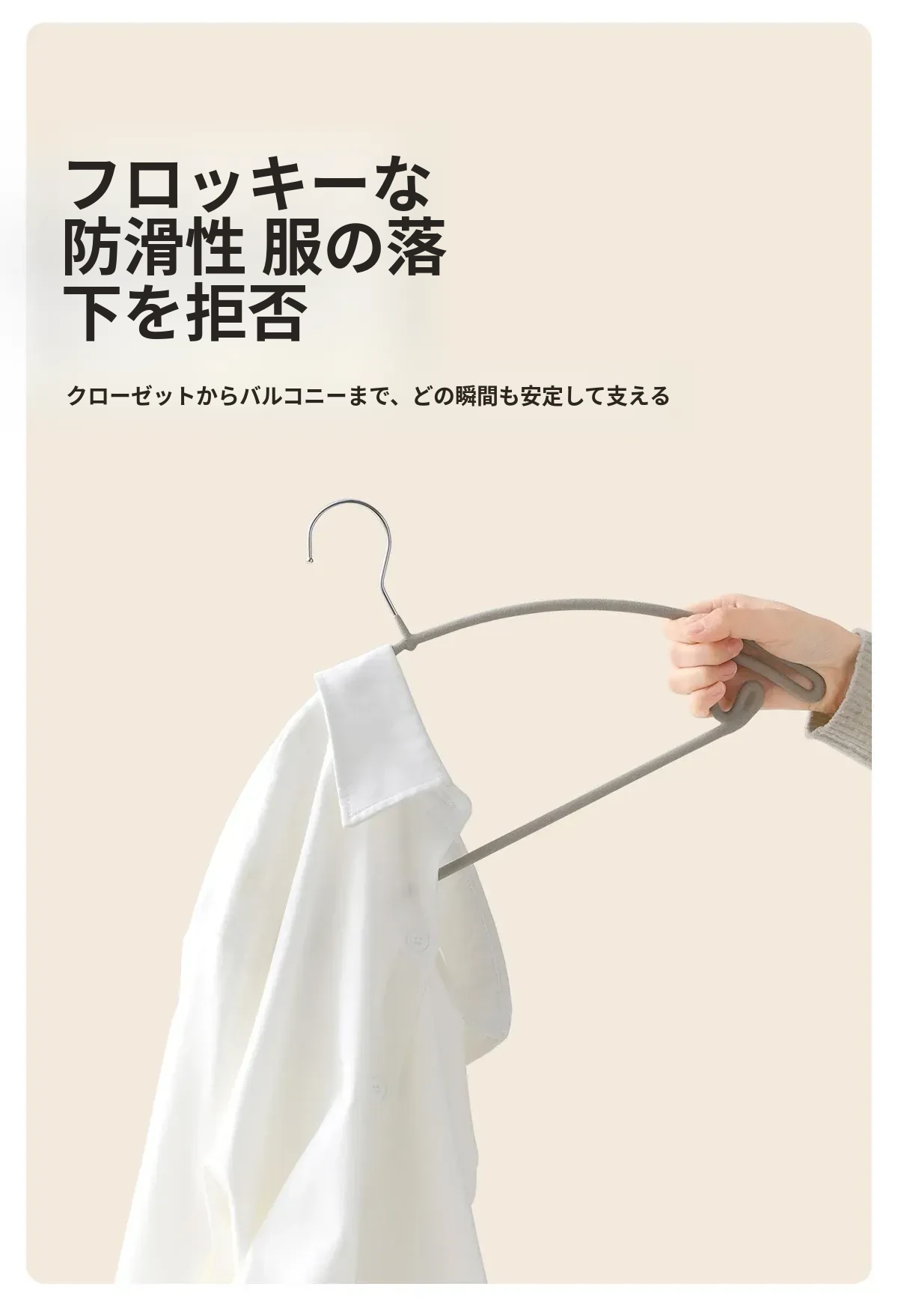 FaSoLaフロッキー無痕ショルダーハンガー - 家庭用厚手防滑・防錆・防凸起衣類収納ハンガー、しっかりとしたサポートで衣類を美しく保ちます!