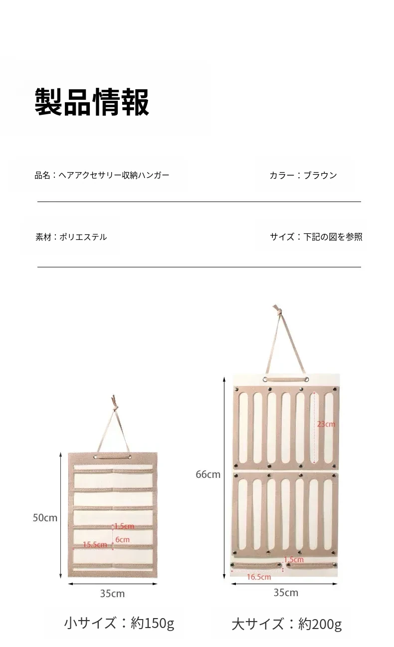 ヘアアクセサリー収納ハンガー(大)2個- フック2個付き