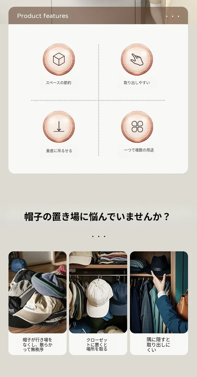 FaSoLa 帽子収納壁掛け - ベレー帽、漁師帽、キャップ、野球帽をスマートに整理!クローゼットのスペースを有効活用し、帽子をおしゃれにディスプレイする便利なフック。