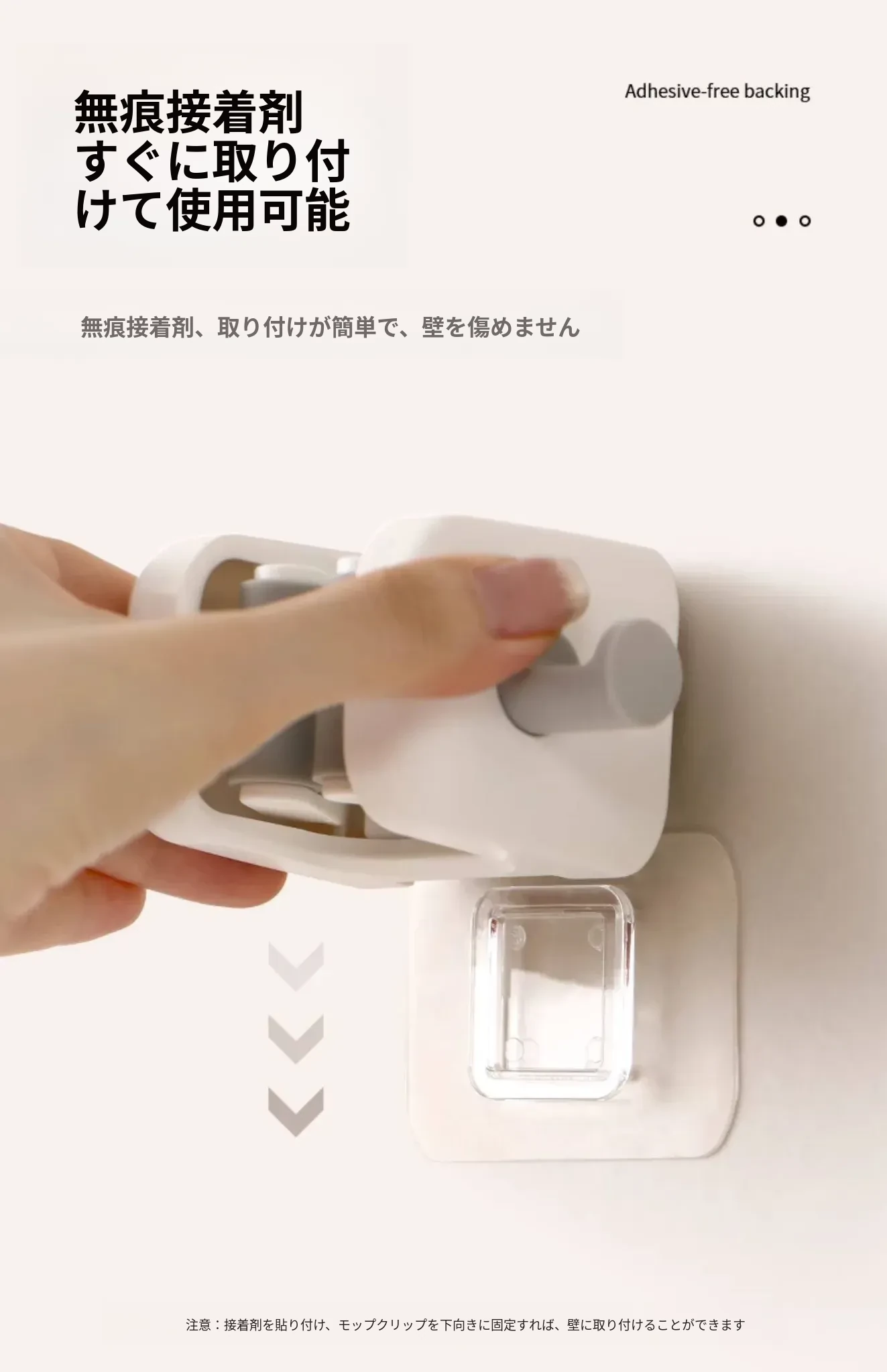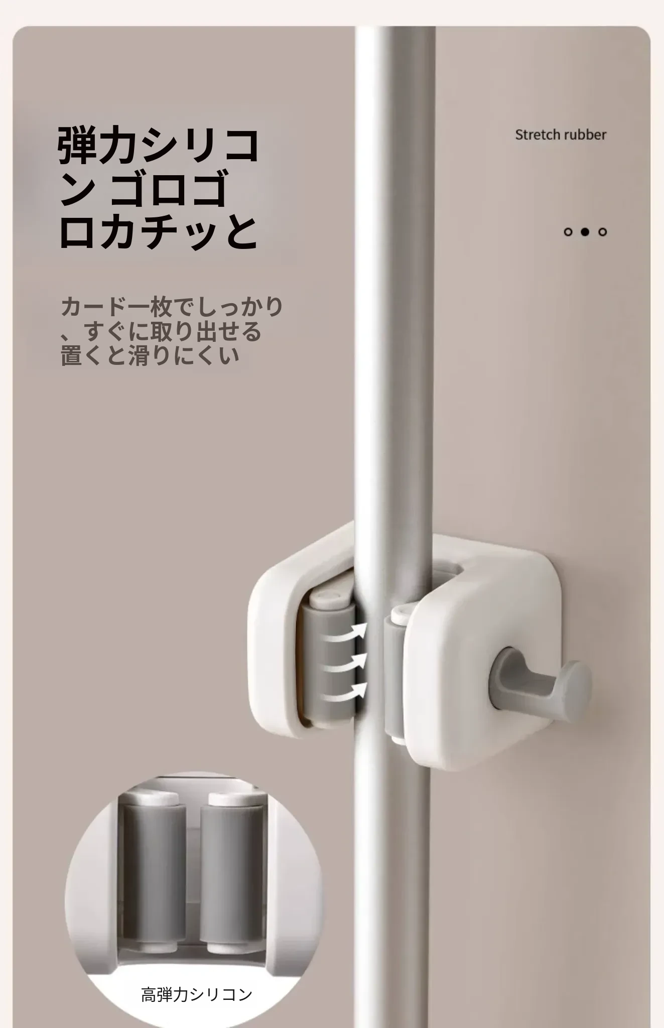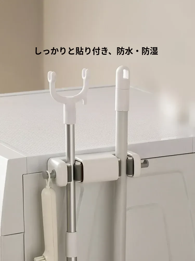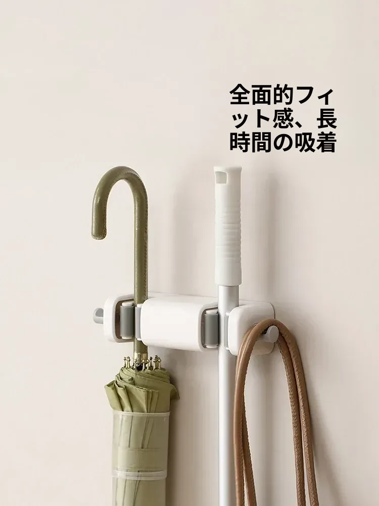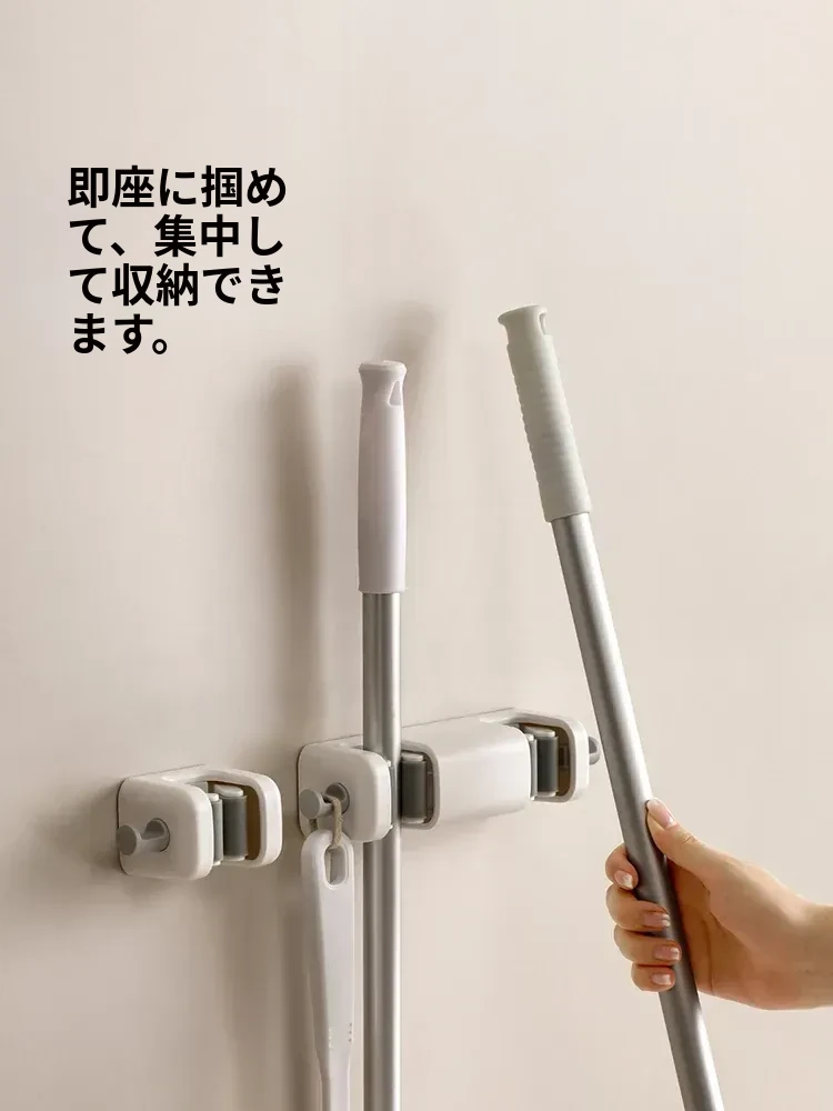 FaSoLa 壁掛けモップホルダー - ノー・ドリルで簡単取り付け!多機能クリーナーフック、トイレや掃除道具をしっかり固定。すっきり整頓して、清潔な空間を手に入れましょう!
