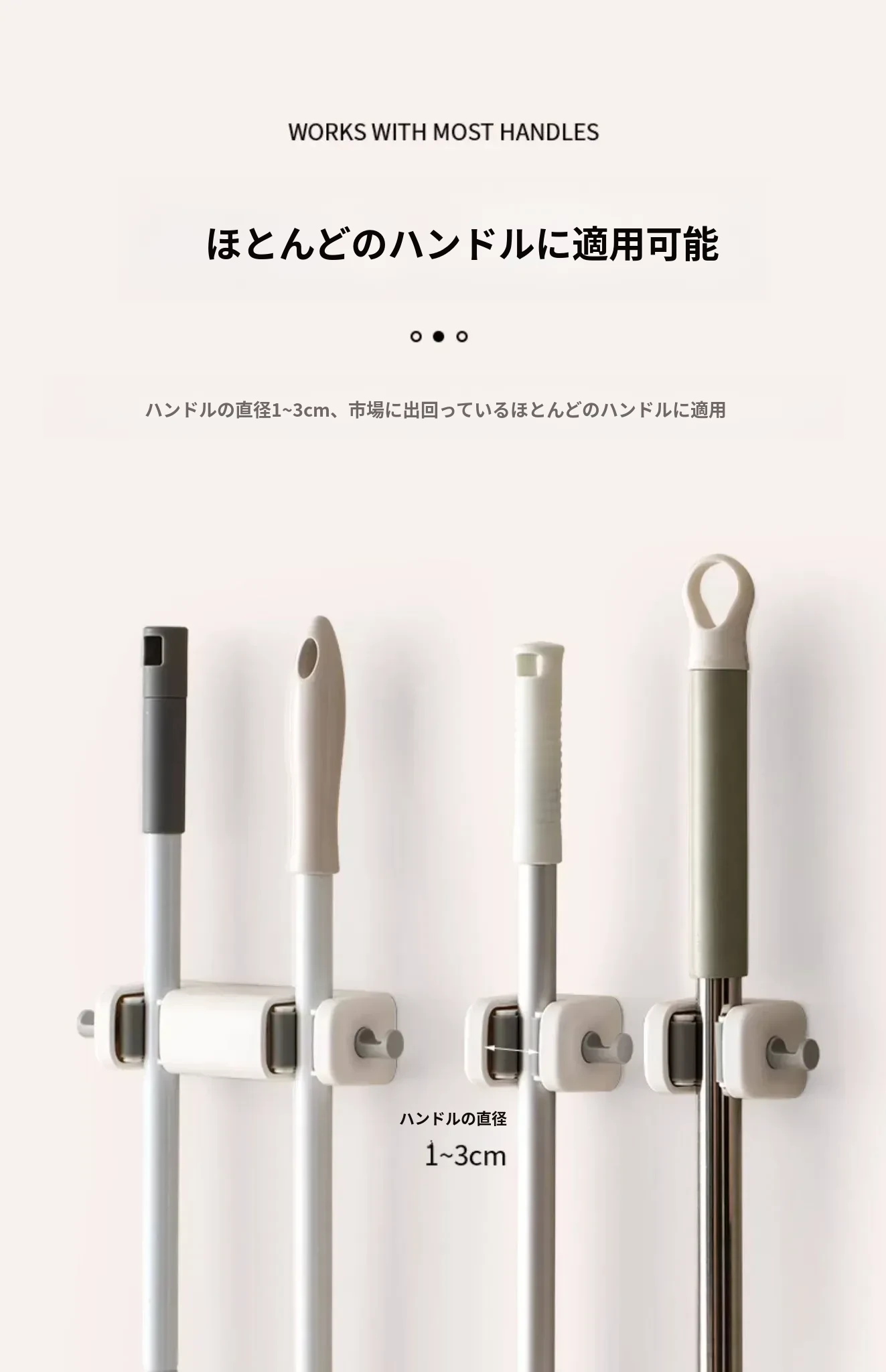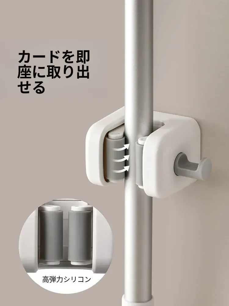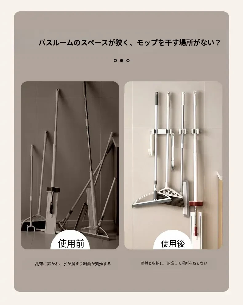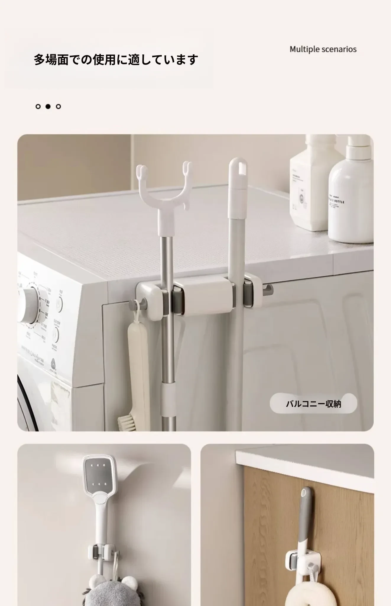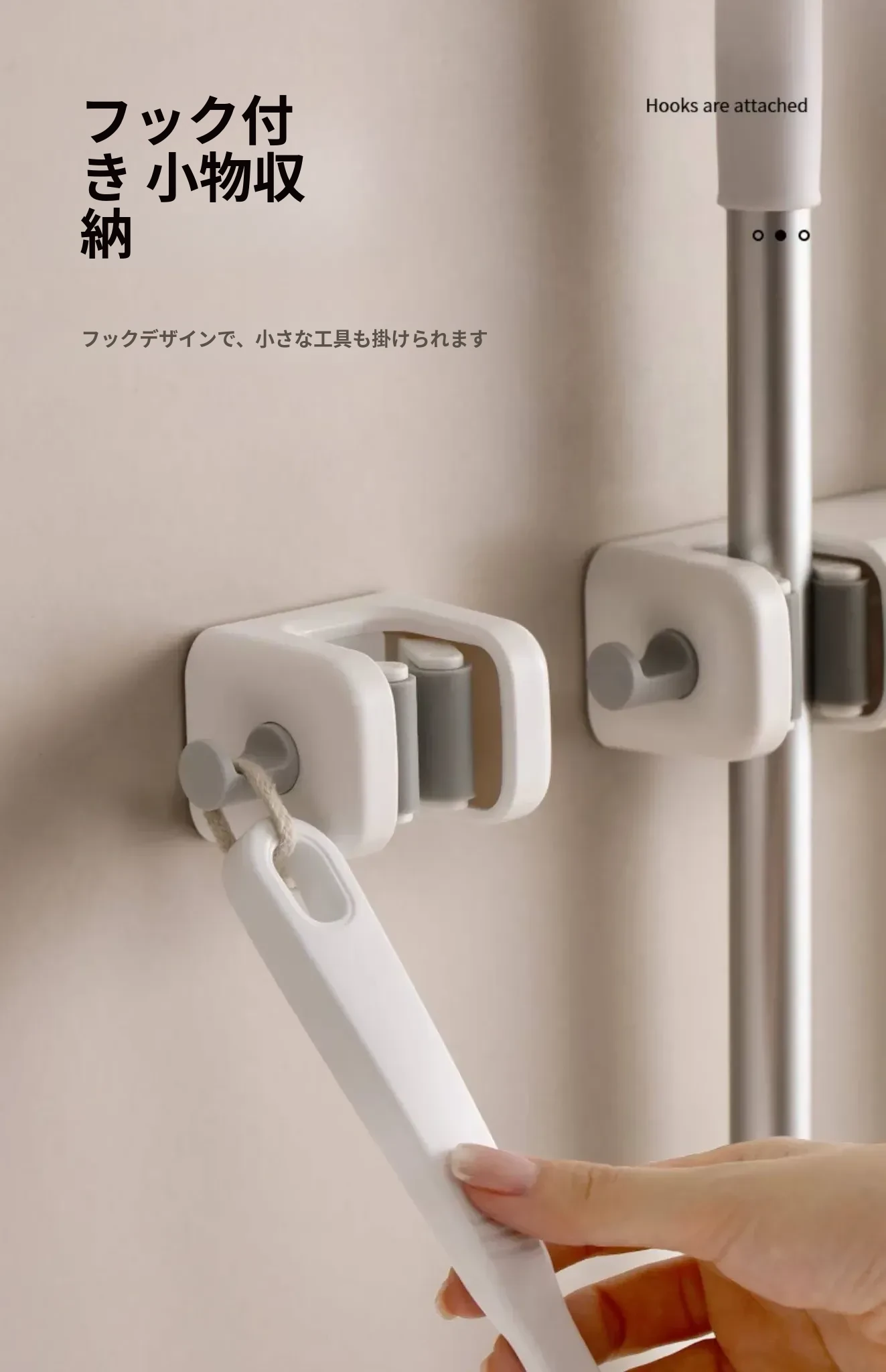 FaSoLa 壁掛けモップホルダー - ノー・ドリルで簡単取り付け!多機能クリーナーフック、トイレや掃除道具をしっかり固定。すっきり整頓して、清潔な空間を手に入れましょう!