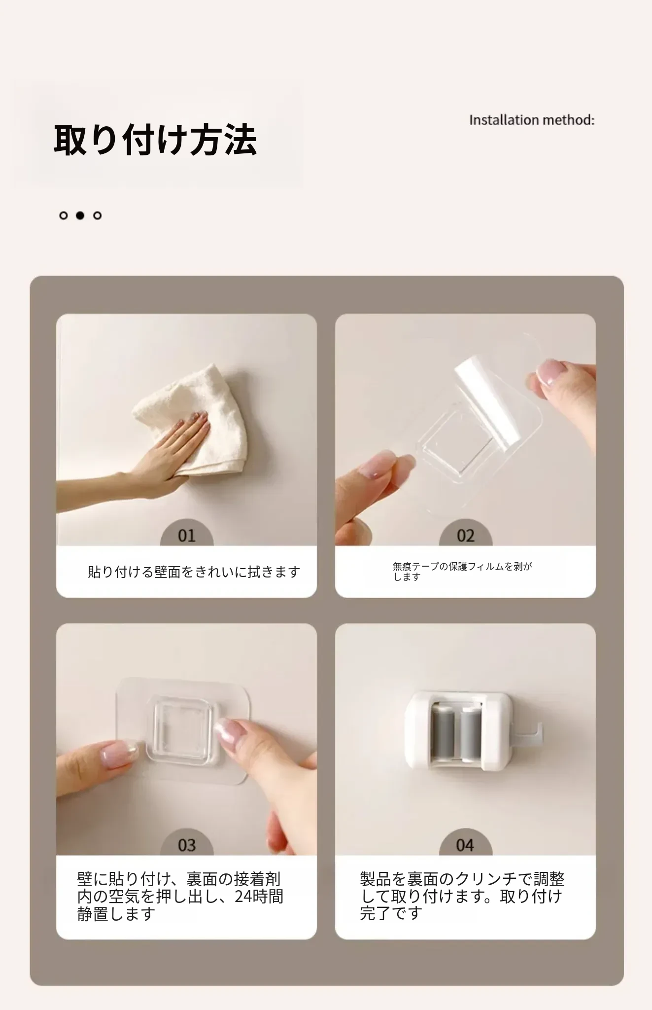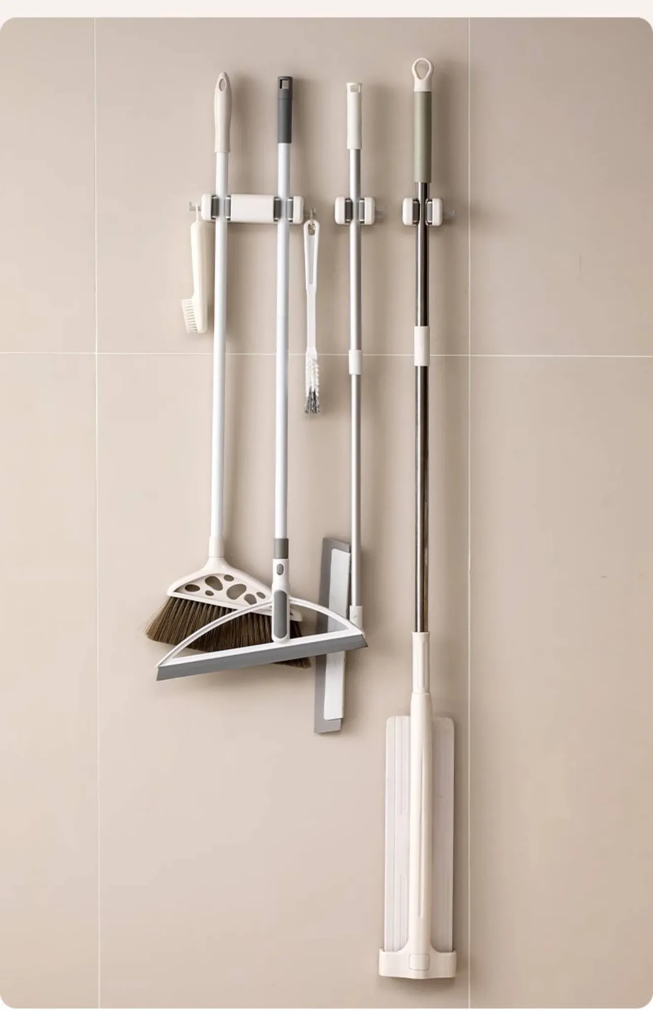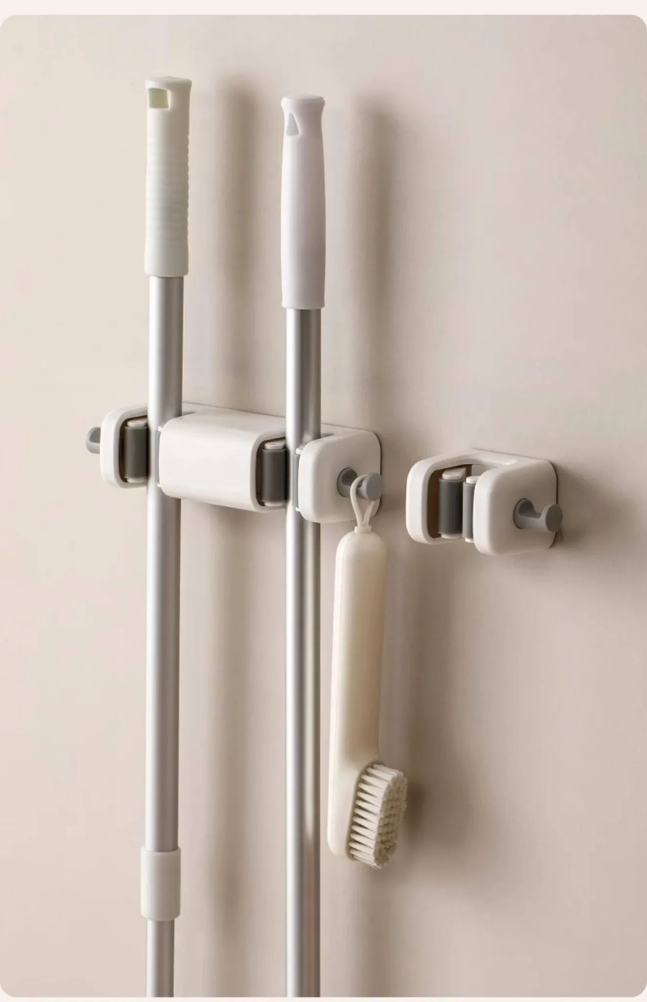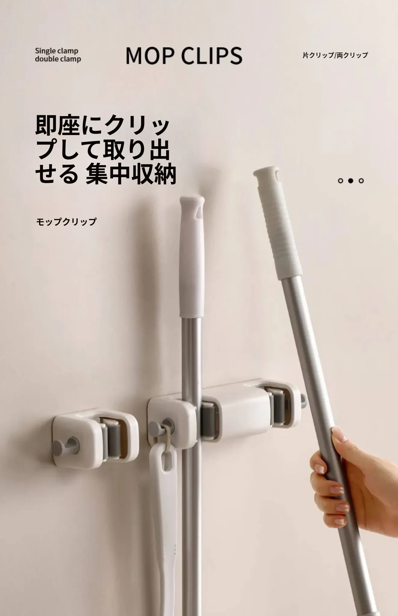 FaSoLa 壁掛けモップホルダー - ノー・ドリルで簡単取り付け!多機能クリーナーフック、トイレや掃除道具をしっかり固定。すっきり整頓して、清潔な空間を手に入れましょう!