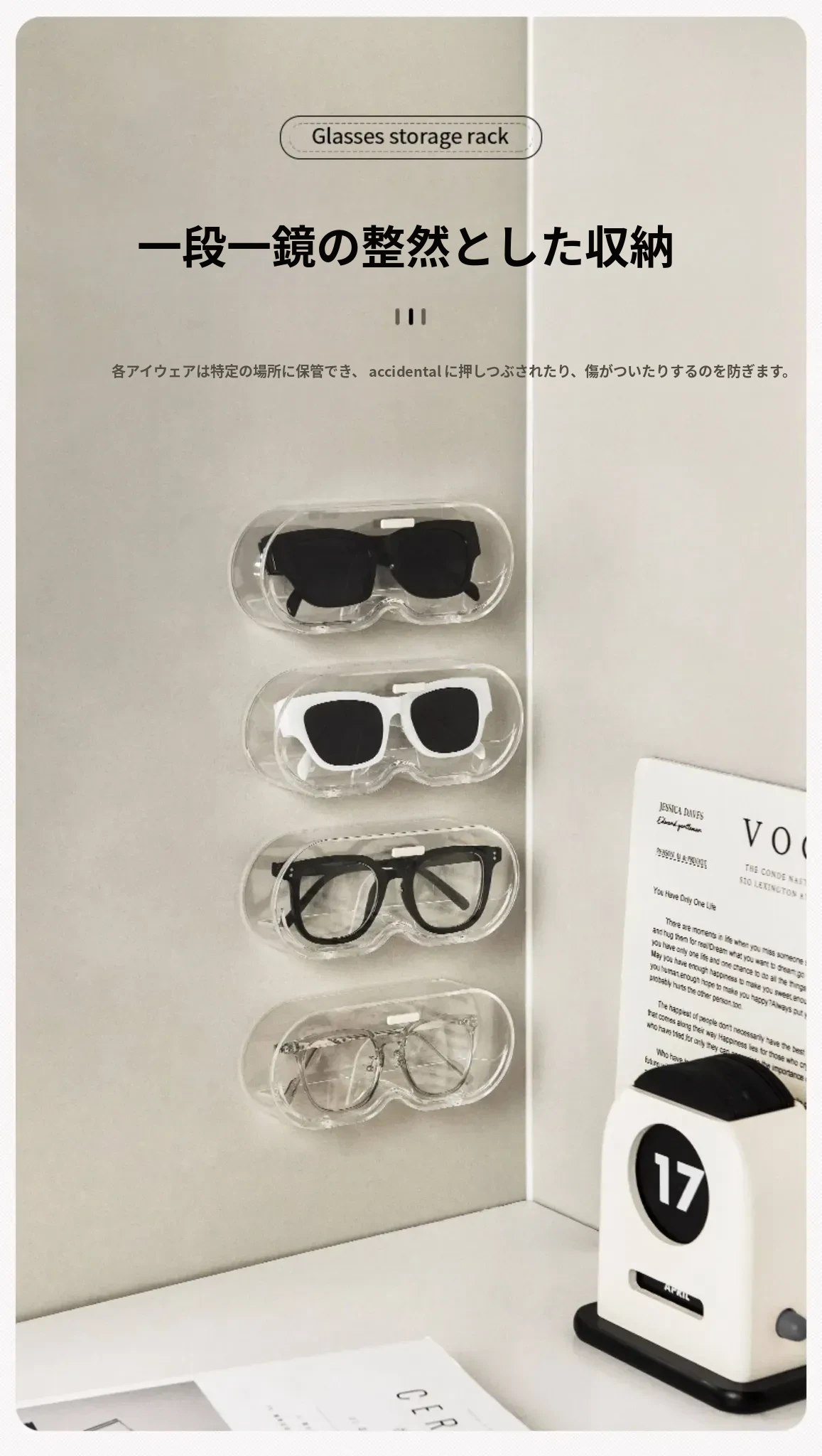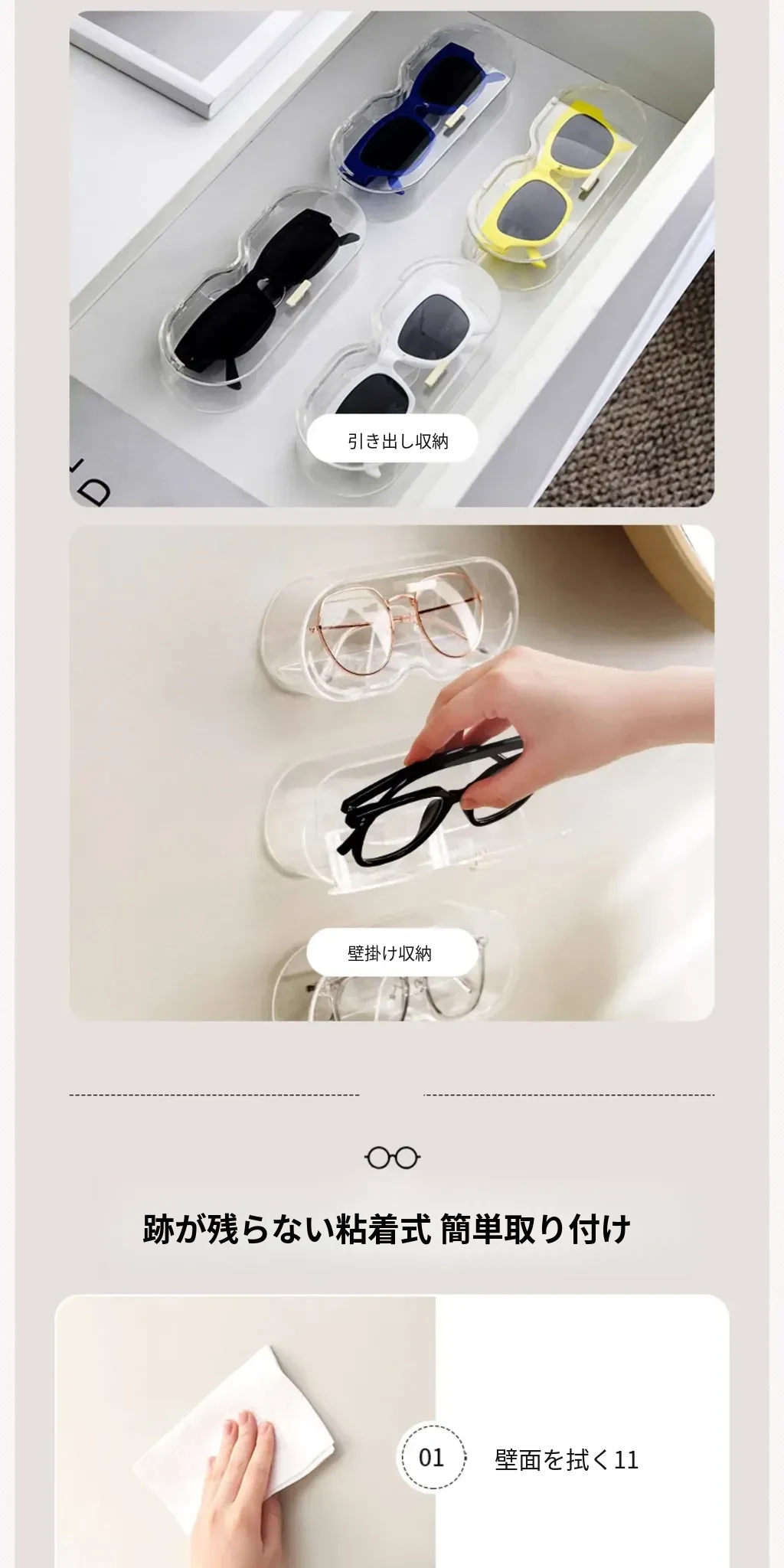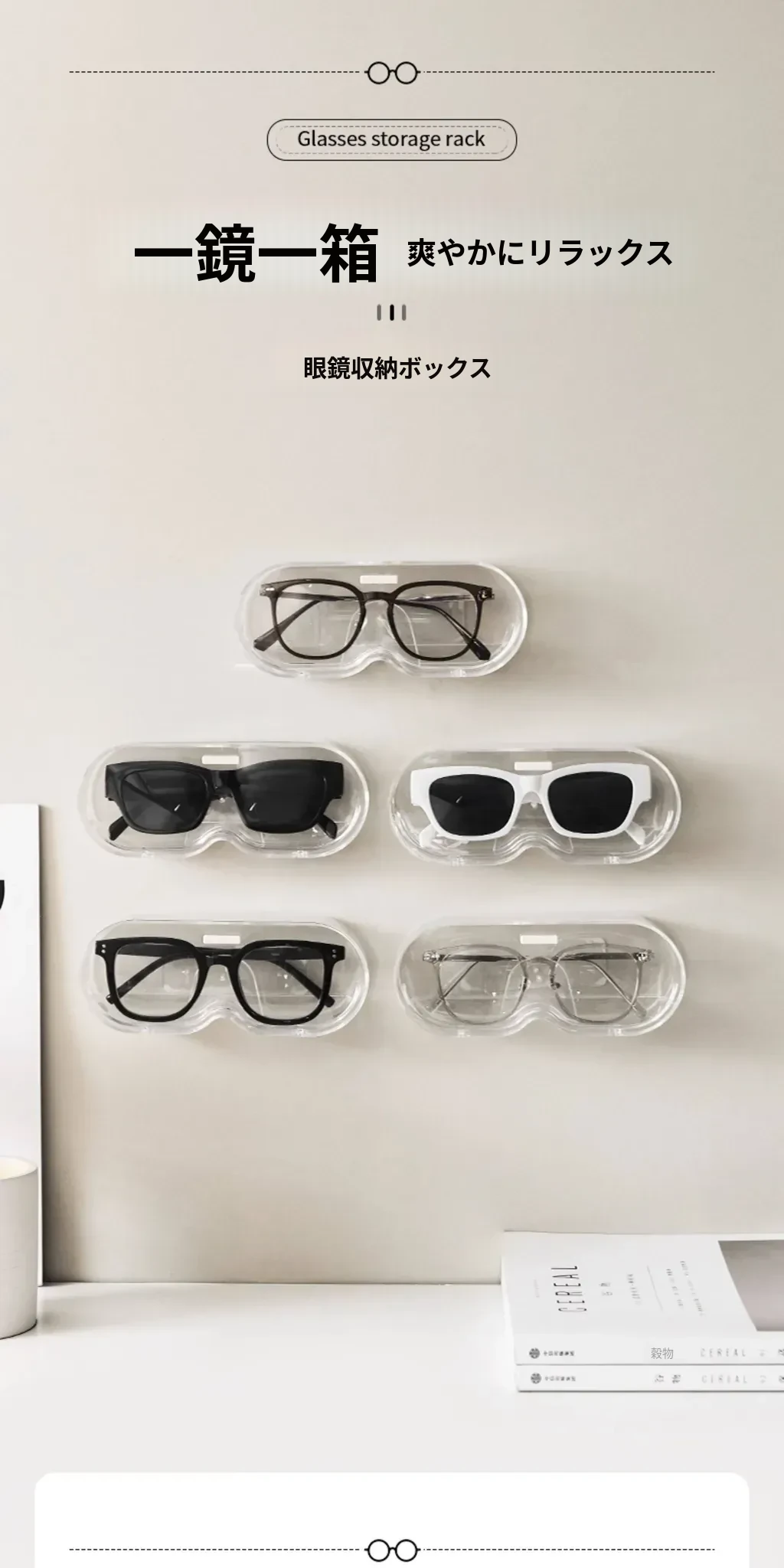 FaSoLa 眼鏡収納ボックス 壁掛け式 簡単取り付けで圧迫感ゼロ!ベッドサイドや壁にぴったりの近視メガネ・サングラスディスプレイラック。おしゃれで便利な収納スペースを実現!