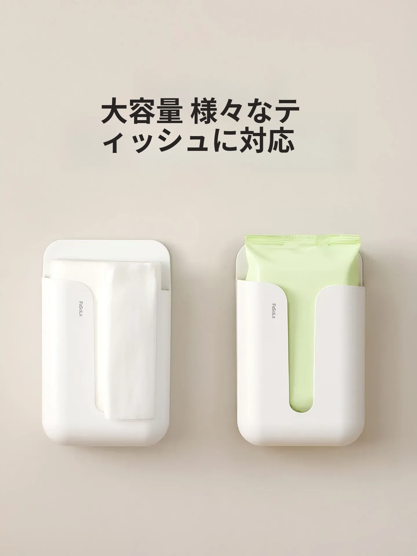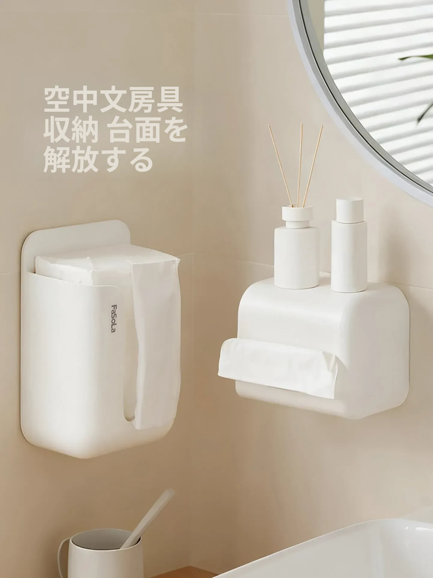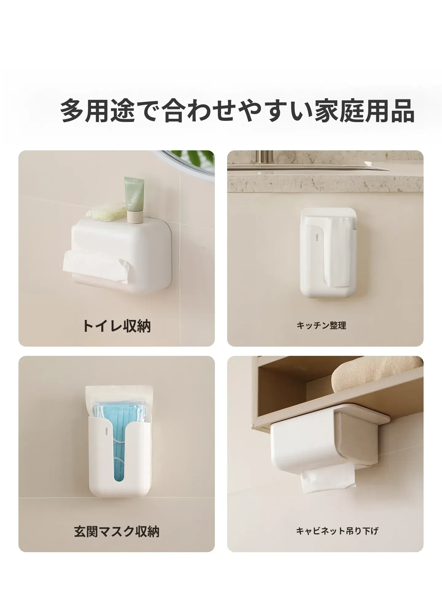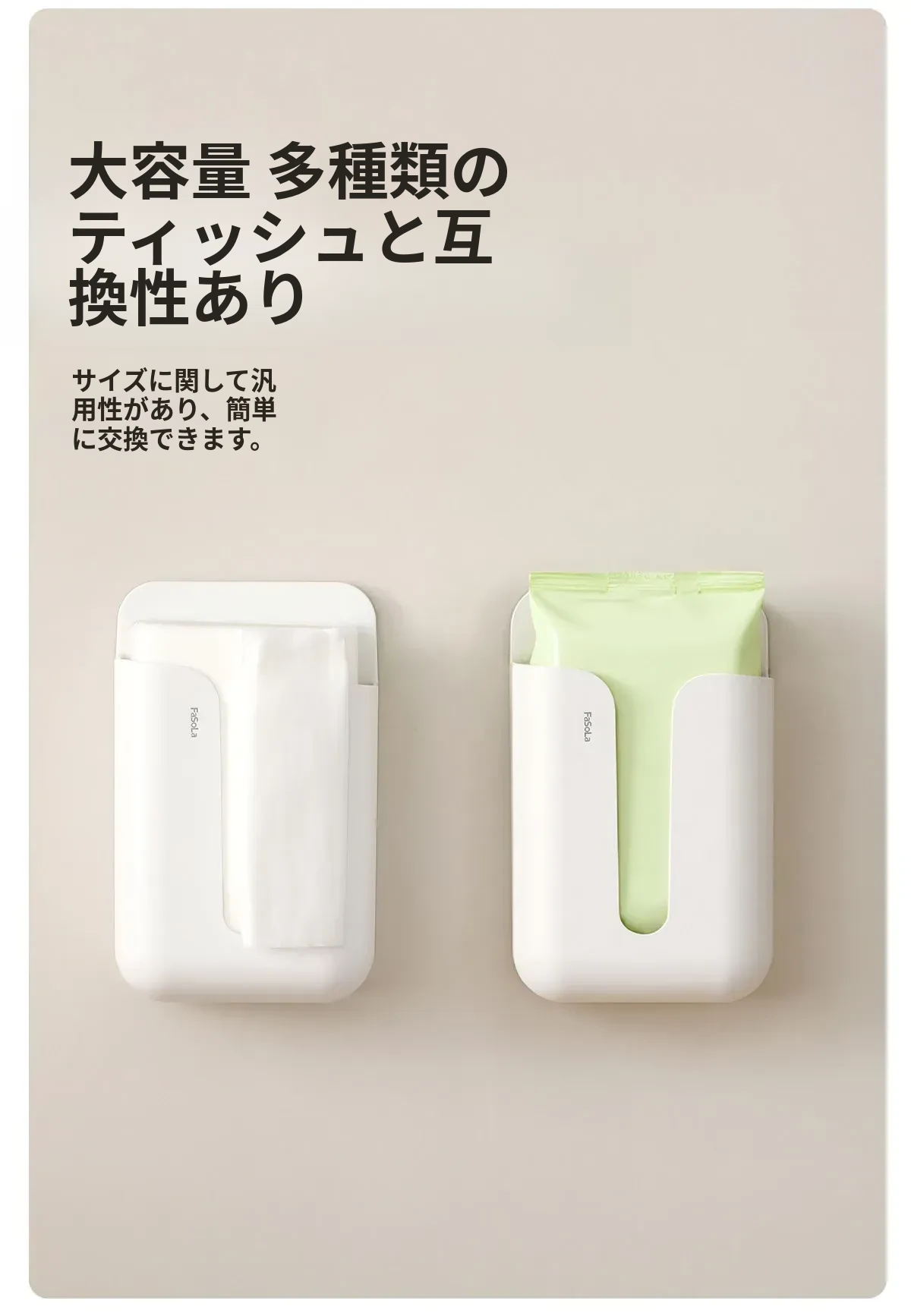 FaSoLa壁掛けティッシュボックス - トイレやキッチンに最適!穴を開けずに取り付けられる便利な収納ボックスで、倒掛け式デザインがスペースを有効活用します。家庭での使い勝手抜群!