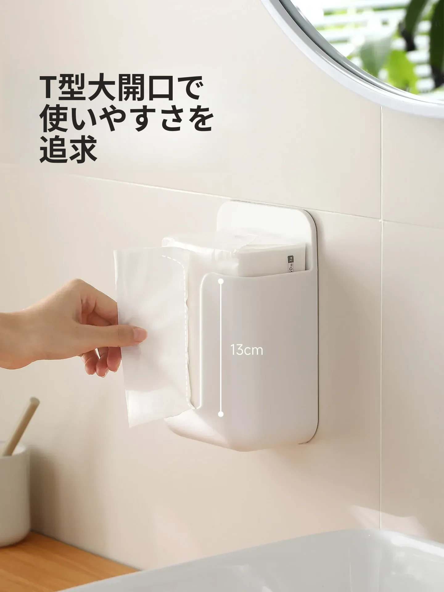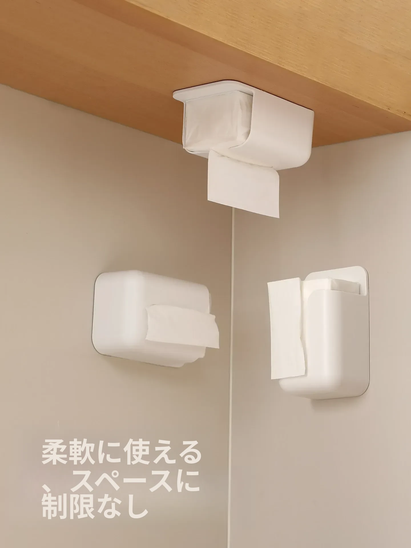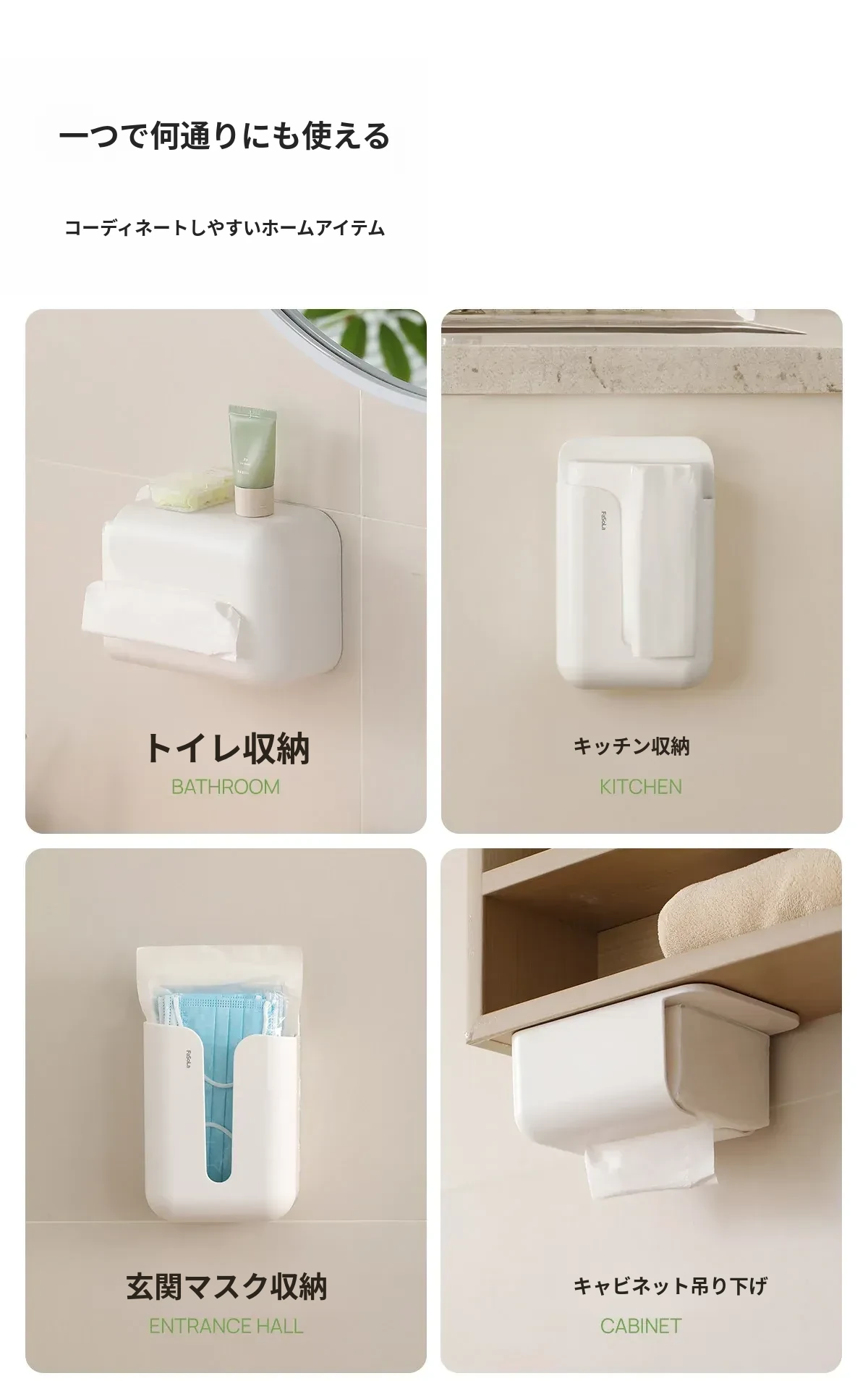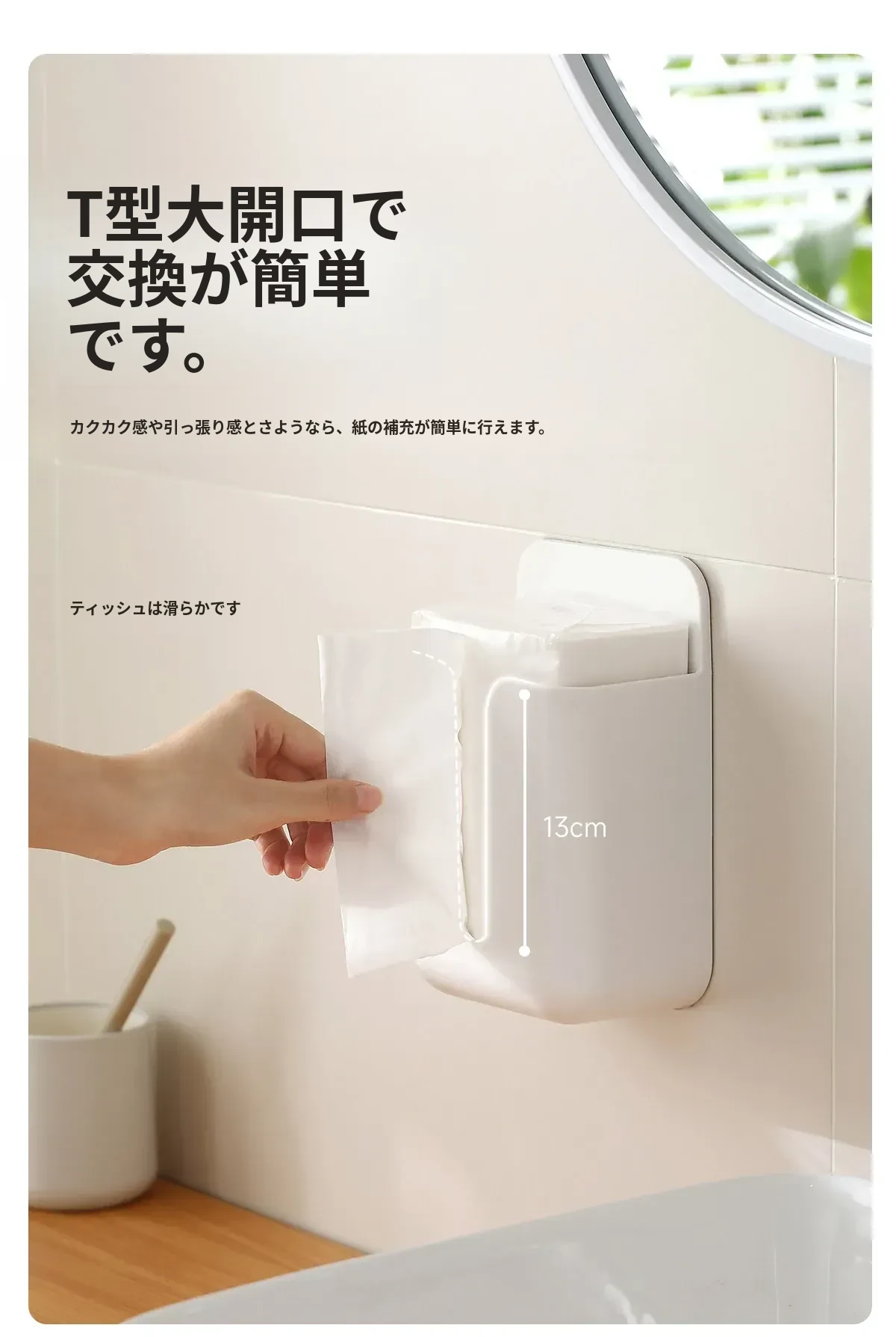 FaSoLa壁掛けティッシュボックス - トイレやキッチンに最適!穴を開けずに取り付けられる便利な収納ボックスで、倒掛け式デザインがスペースを有効活用します。家庭での使い勝手抜群!