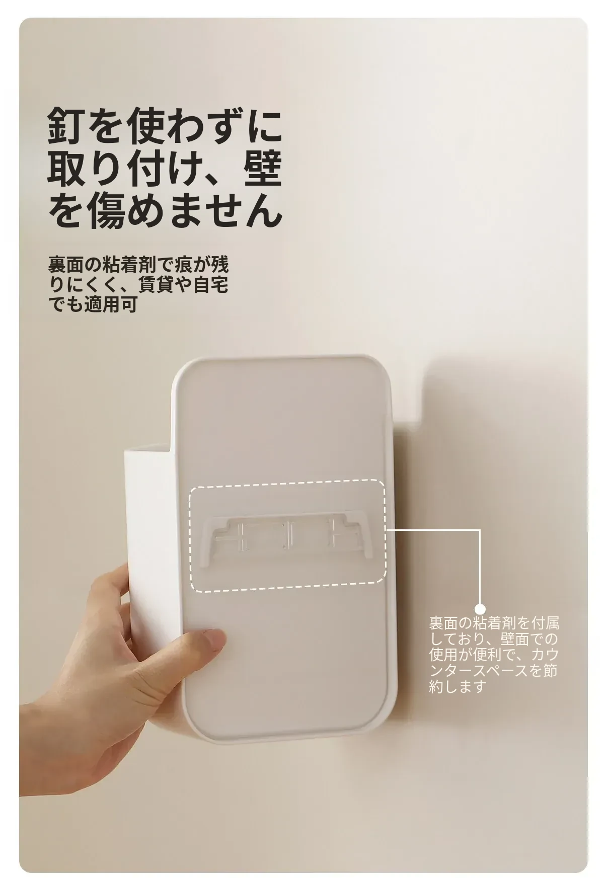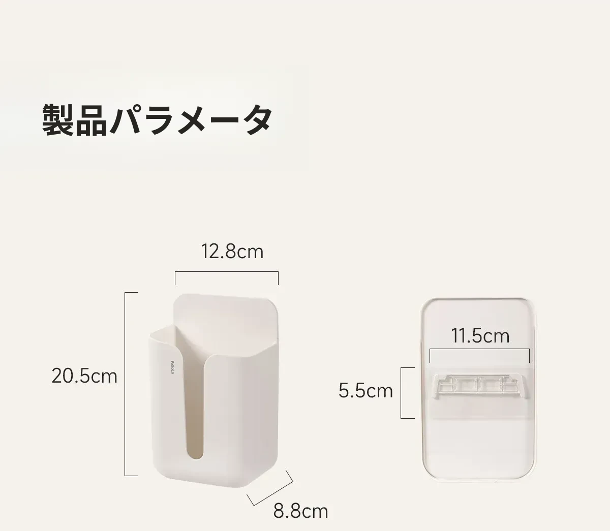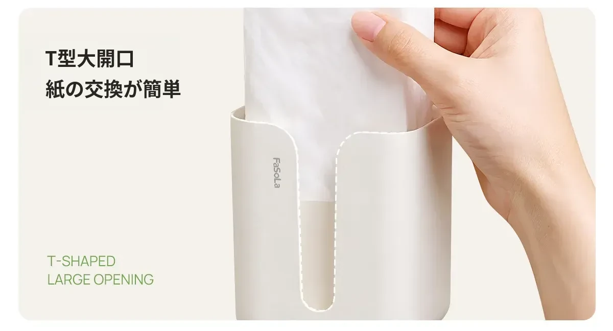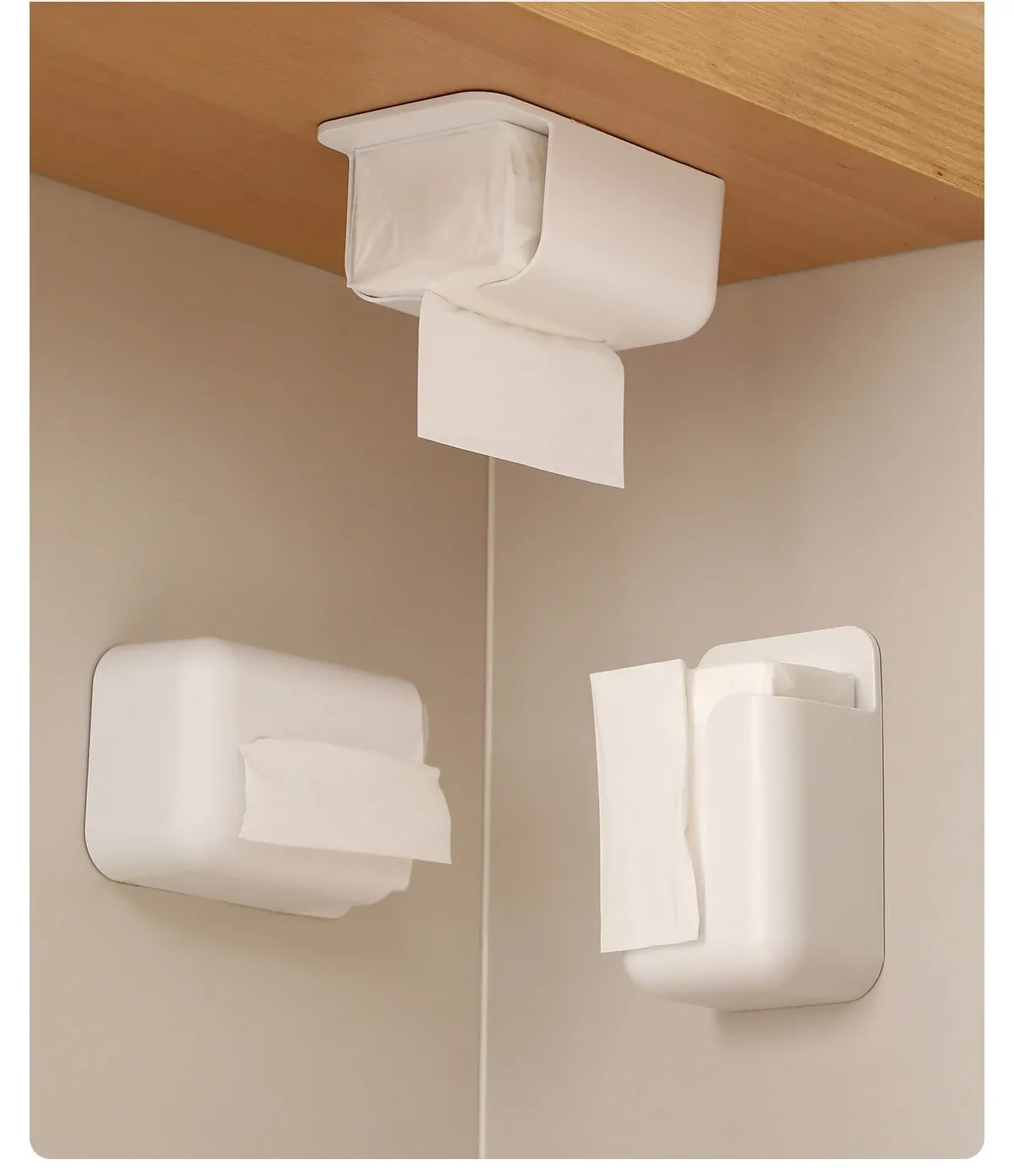 FaSoLa壁掛けティッシュボックス - トイレやキッチンに最適!穴を開けずに取り付けられる便利な収納ボックスで、倒掛け式デザインがスペースを有効活用します。家庭での使い勝手抜群!