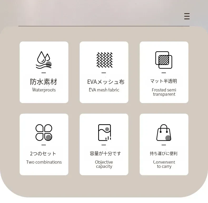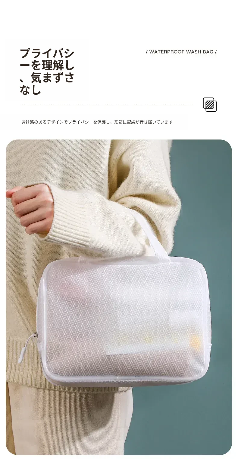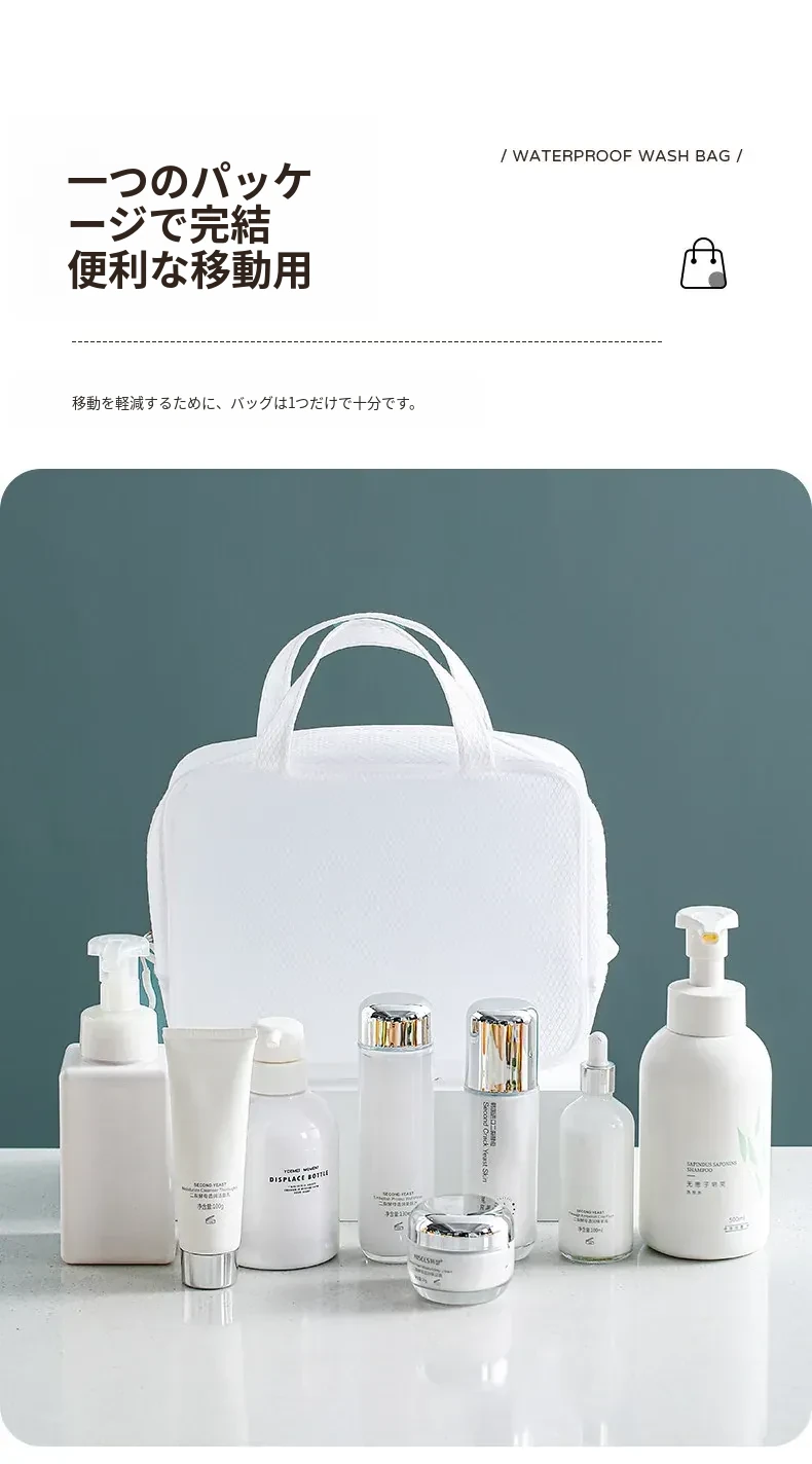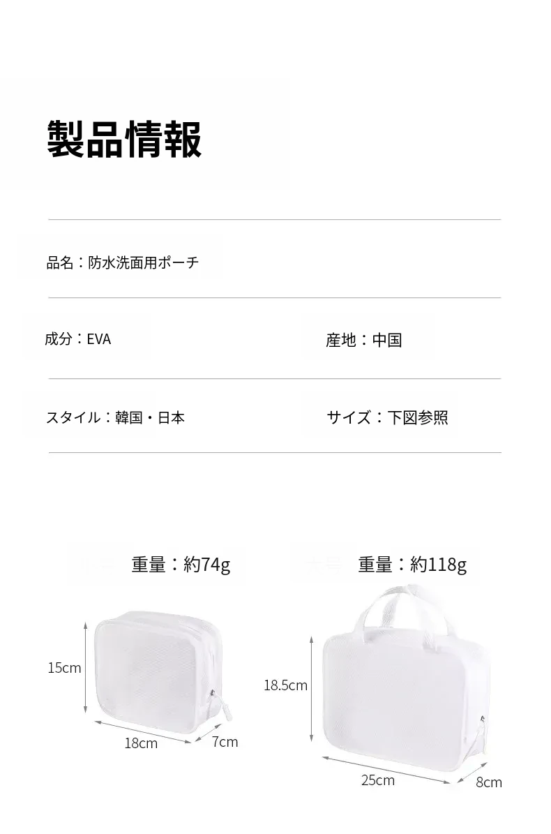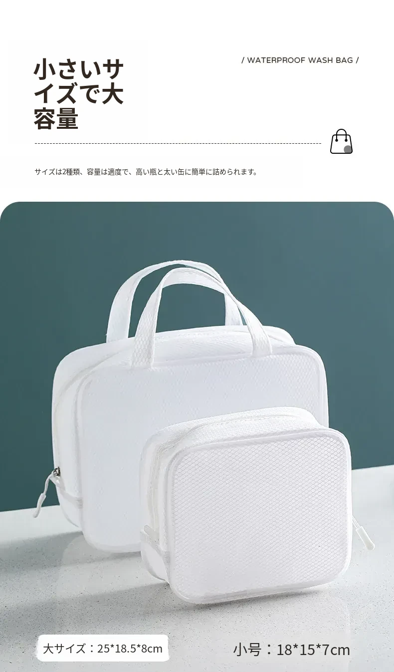 ホワイト-防水トイレタリーバッグ(小サイズ+大サイズ)