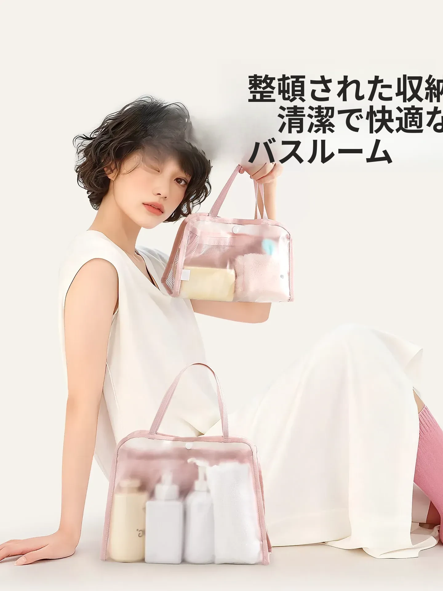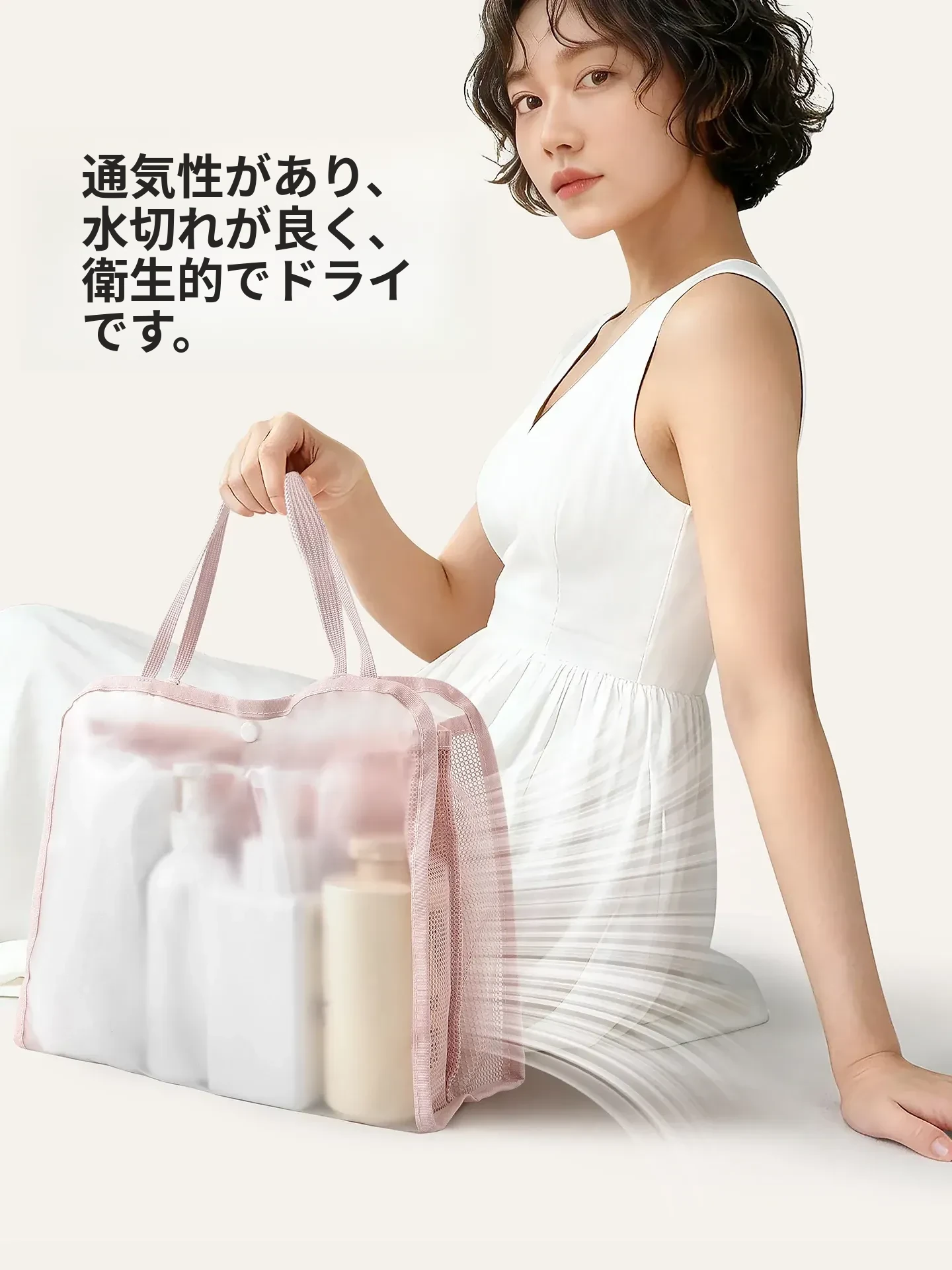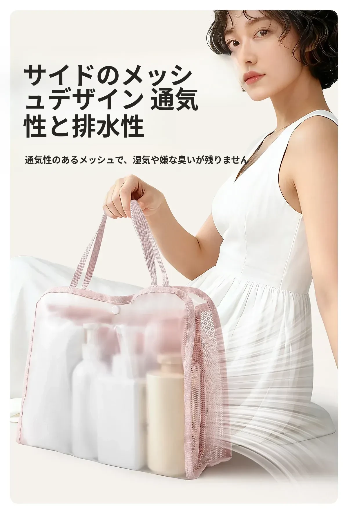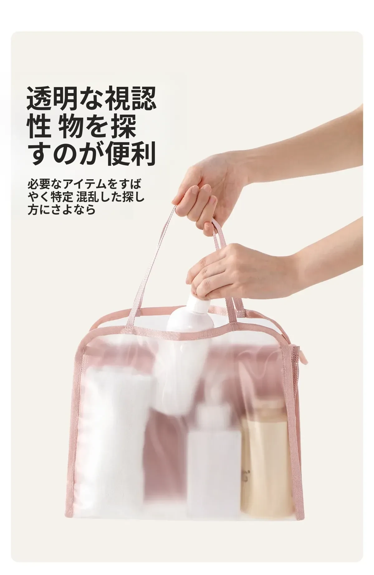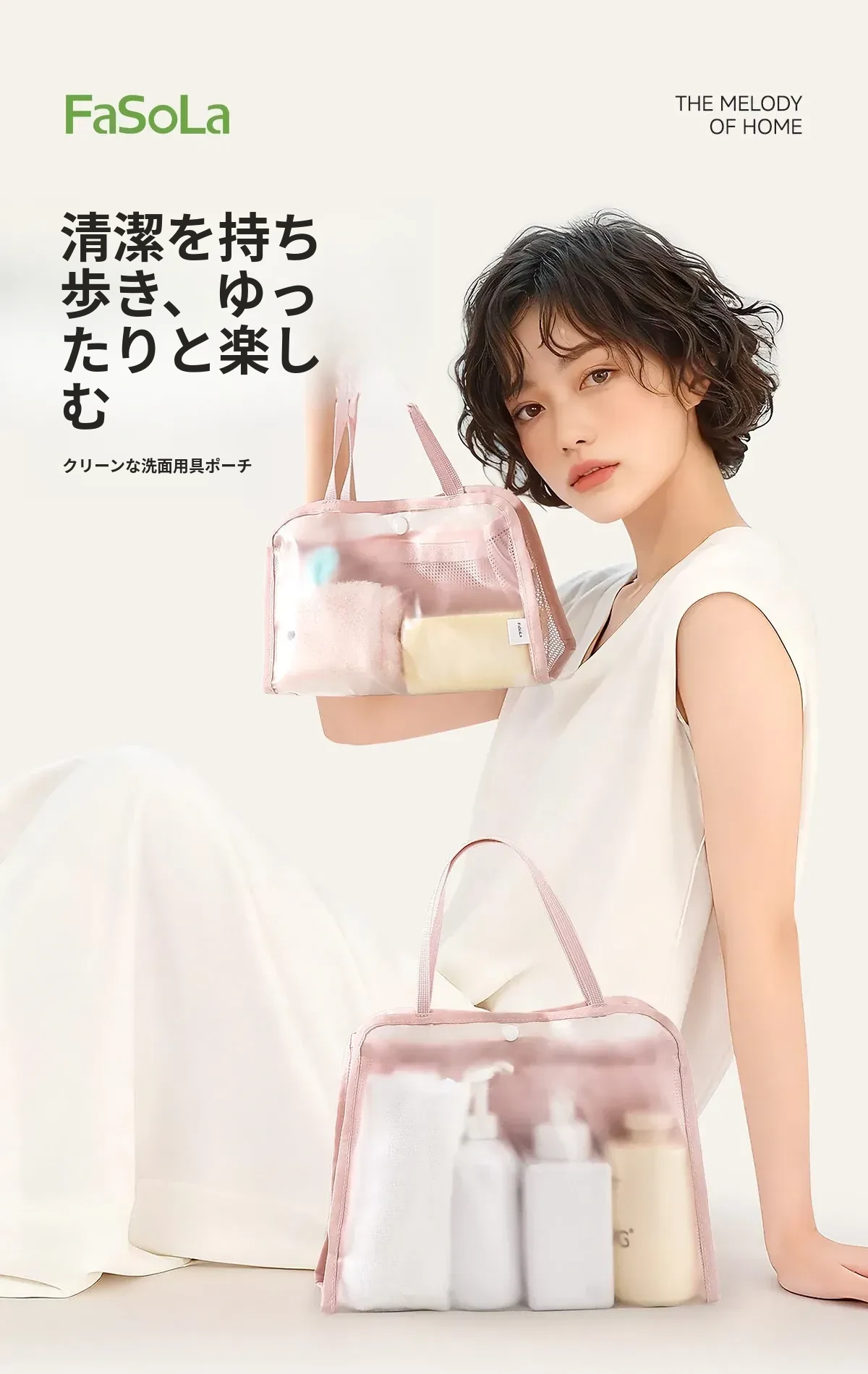 FaSoLa 透明防水透気洗面用収納ポーチ - 家庭用タオルやボディソープ、化粧品もすっきり整理!持ち運び便利で旅行にも最適なアイテムです。