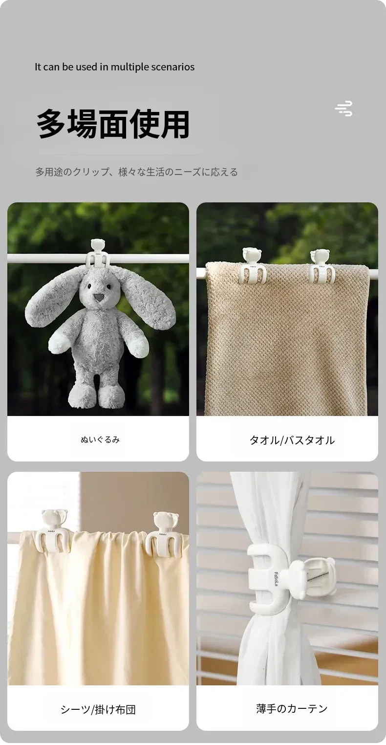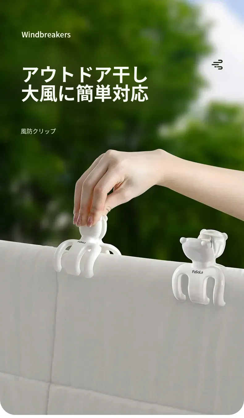 FaSoLa風を防ぐクリップ付き多機能洗濯バサミ - 家庭用、滑らずしっかり固定!布団や衣類をしっかり干せるプラスチック製の便利アイテム!