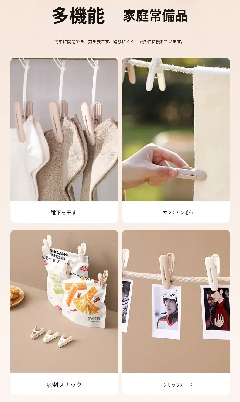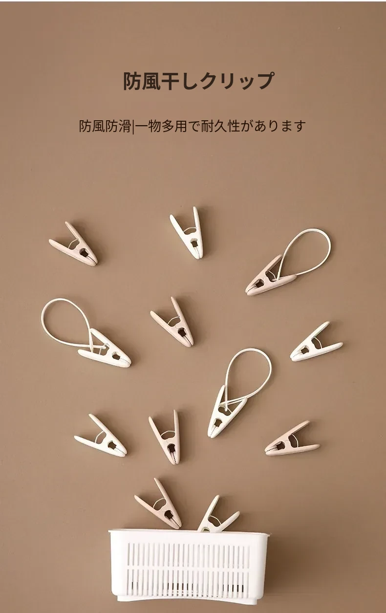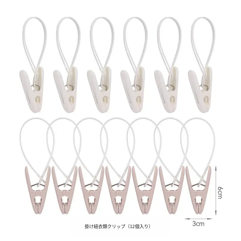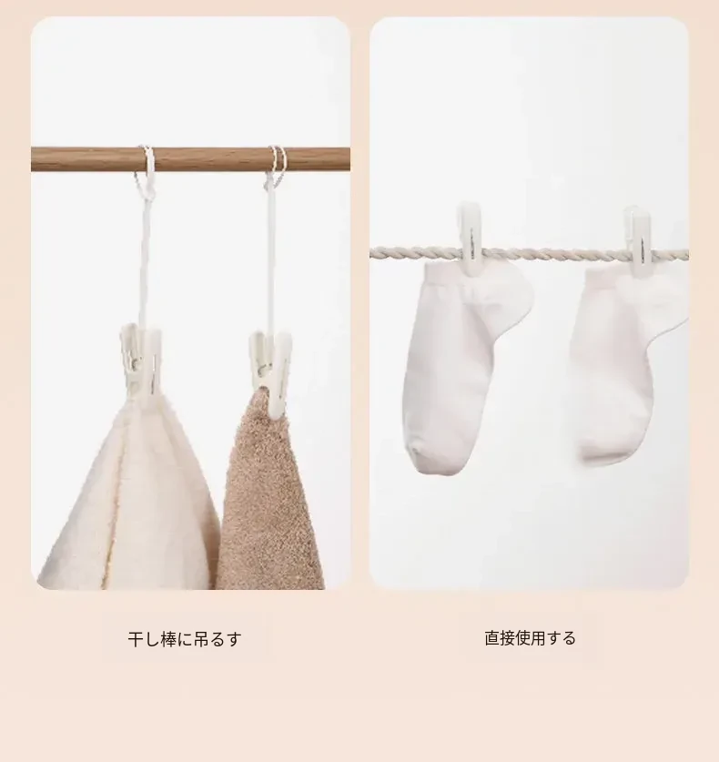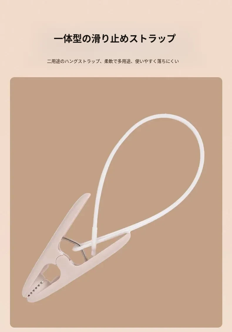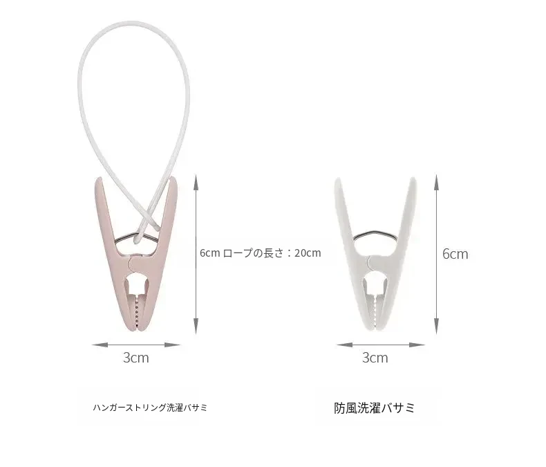 FaSoLa風防止クリップ付きプラスチックハンガーフック、旅行用ロープクリップ、バスルームフック、落下防止の衣類干しクリップで、どこでも安心してお洗濯を!