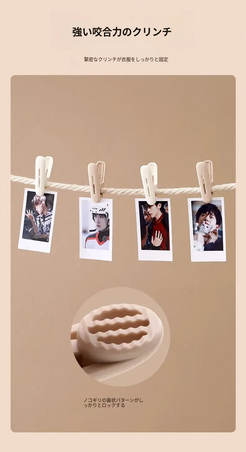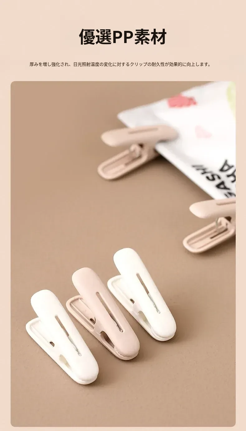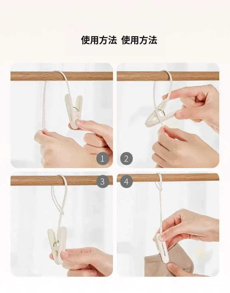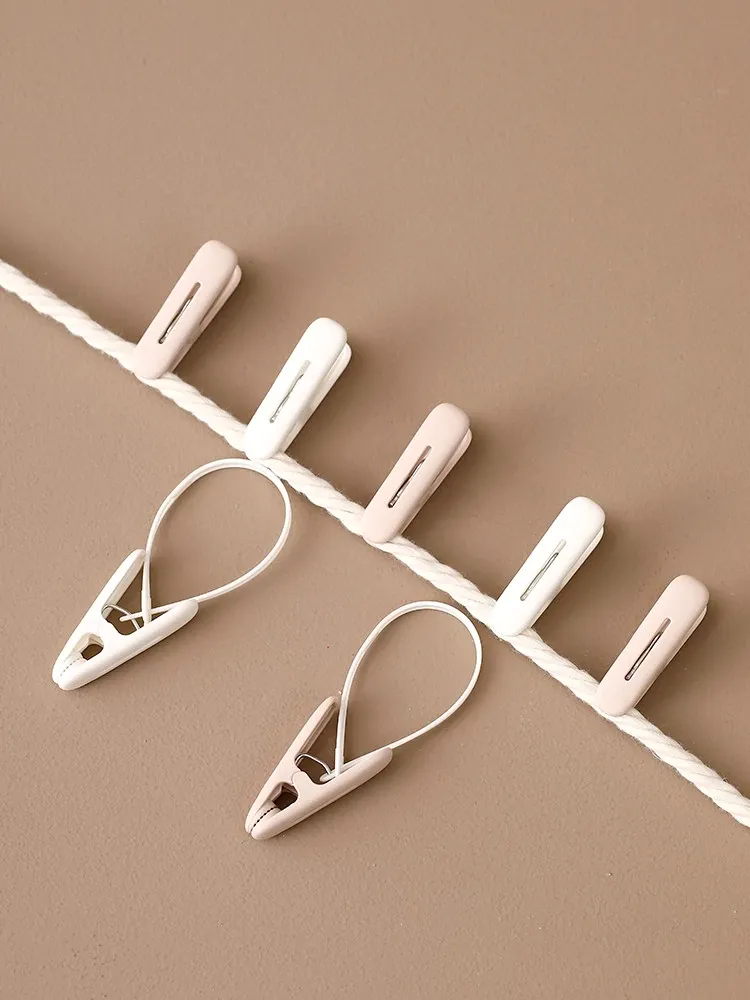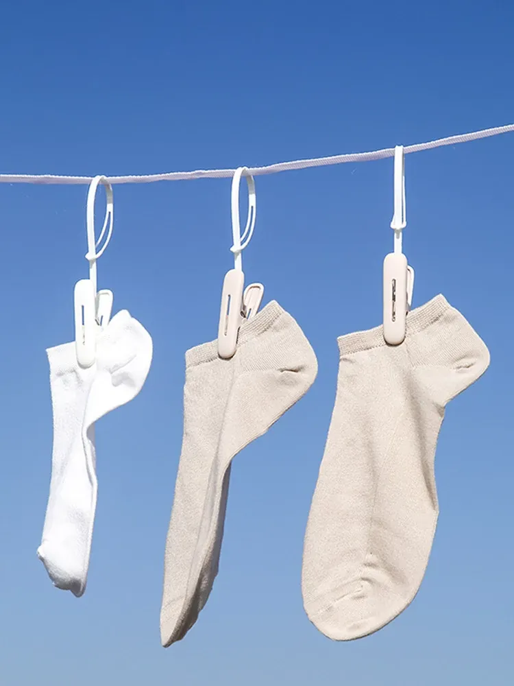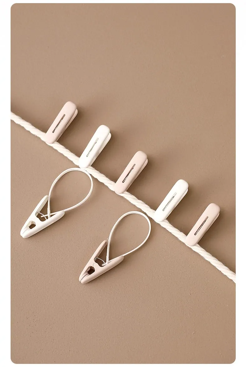 FaSoLa風防止クリップ付きプラスチックハンガーフック、旅行用ロープクリップ、バスルームフック、落下防止の衣類干しクリップで、どこでも安心してお洗濯を!