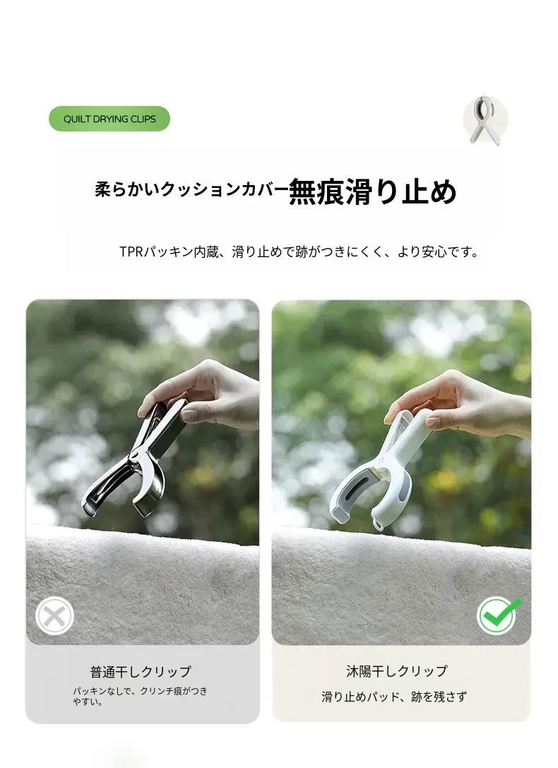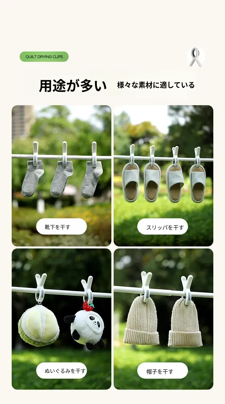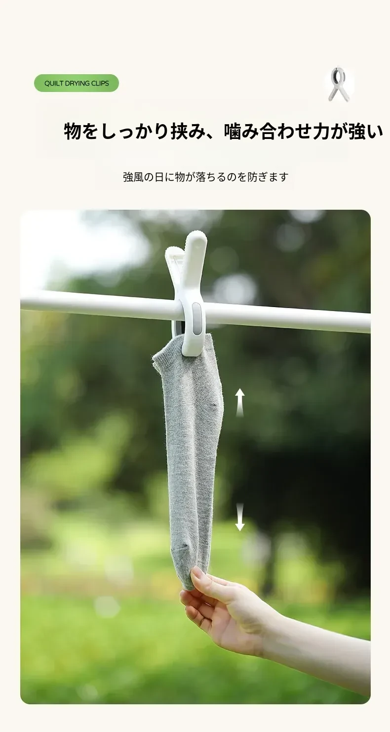 FaSoLa風に強い無痕クリップ!洗濯物や布団をしっかり固定する家庭用クリップ。軽量で使いやすいプラスチック製、小さなクリップで安心の乾燥を実現!