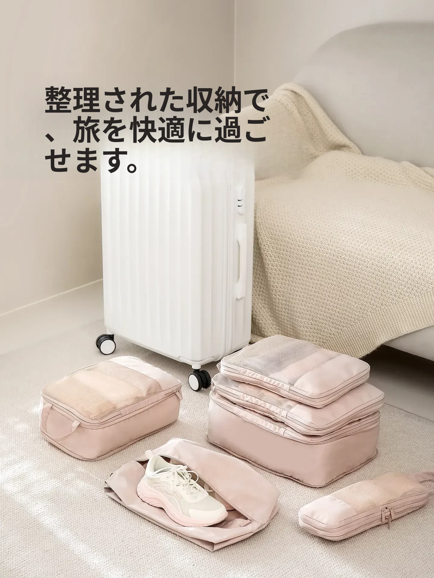 FaSoLa旅行収納バッグ - 圧縮機能付きスーツケース用衣類・下着整理ポーチ!出張や旅行に最適なコンパクトな分割袋で、荷物をスッキリ整理!おしゃれで便利な旅のお供に!