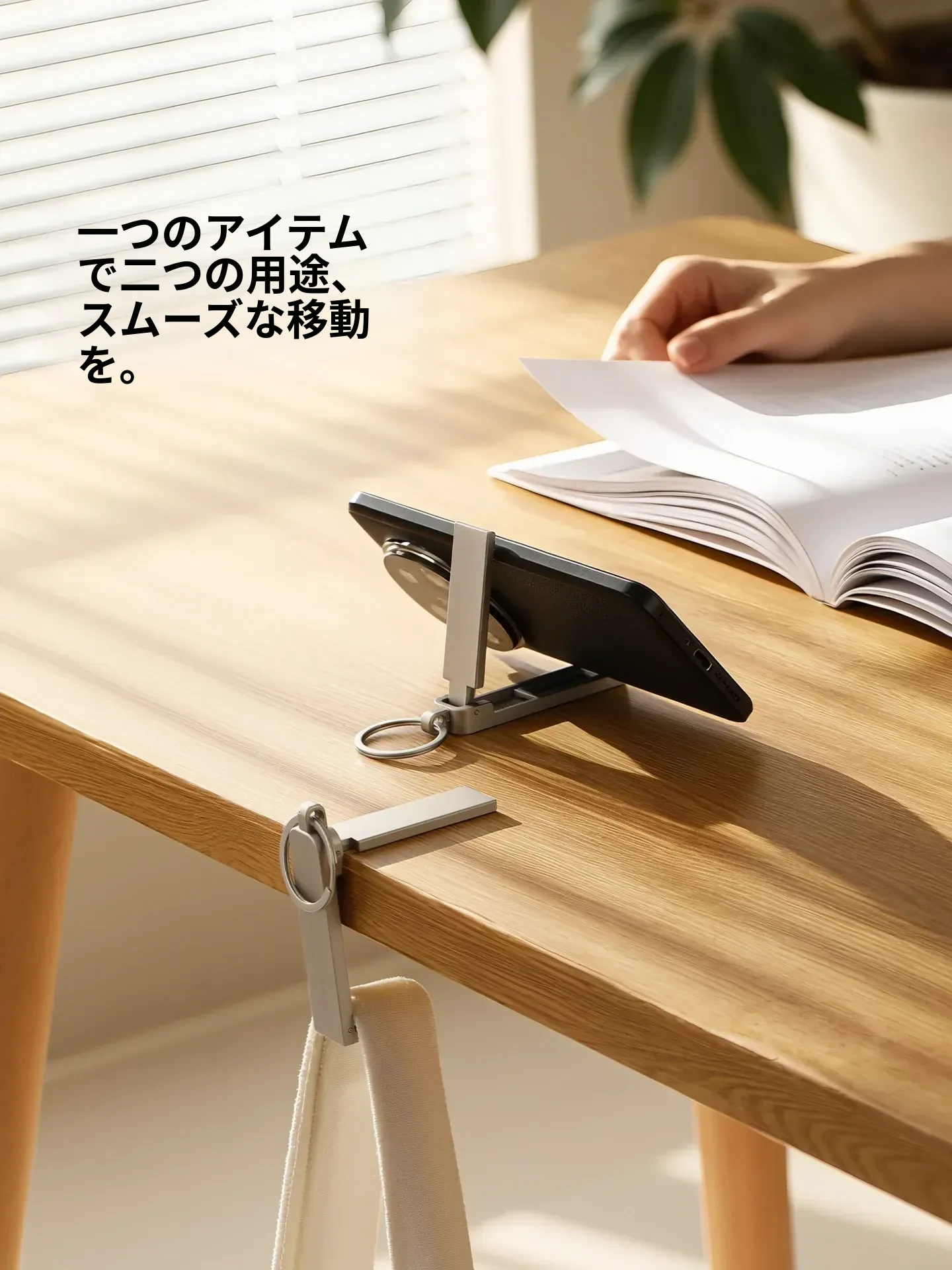 FaSoLa デスクサイドフック 〜 簡単取り付け、オフィスや自宅でのバッグ掛けに最適!多機能スマホスタンド付き、コンパクトで持ち運び便利なアイテムです。