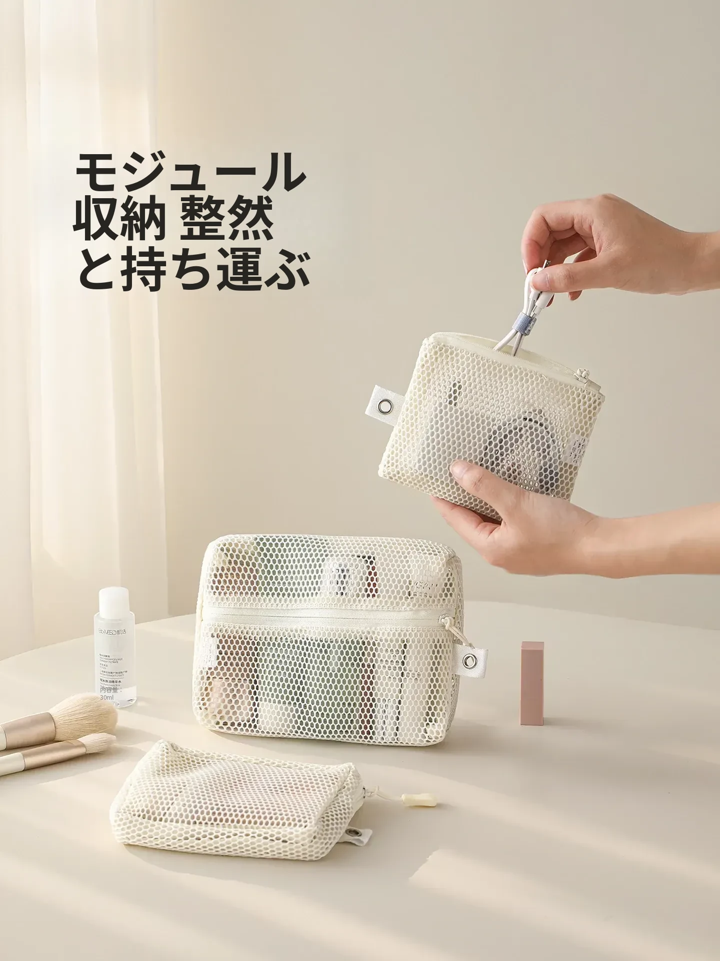 FaSoLa 旅行用洗面用具ポーチ - 通気性メッシュ化粧品収納バッグ、持ち運びに便利なスイミング用透明ネットポーチ!お出かけや旅行に最適な小型バッグです。