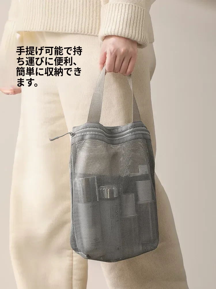 FaSoLa メッシュトイレタリーケース 男女兼用 旅行・出張に最適なポータブル化粧ポーチ 浴室収納バッグ 手提げ型水切り袋で、スマートな整理整頓を実現!