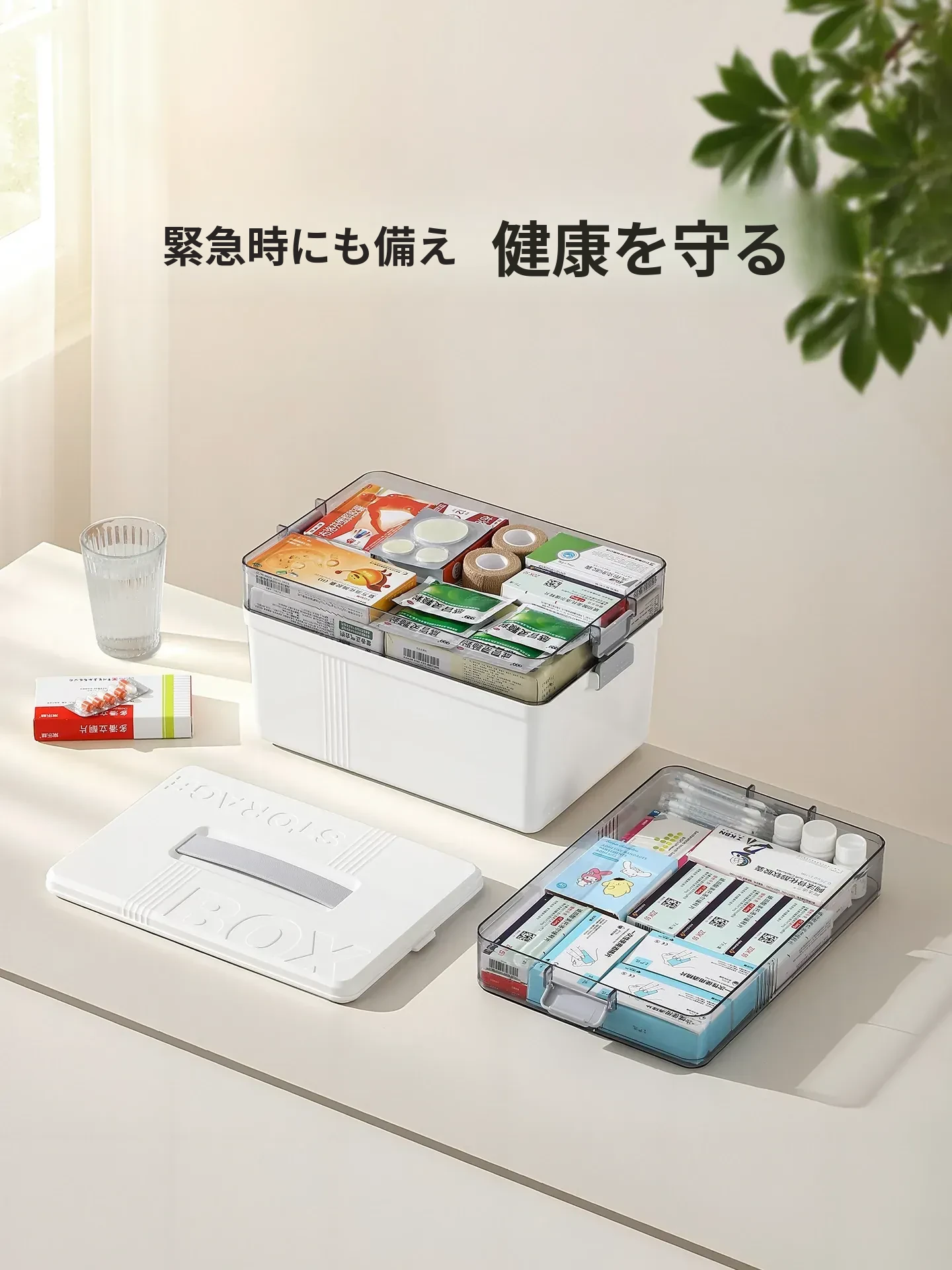 FaSoLa 薬品収納ボックス 大容量 仕切り付き 便利な携帯型 救急家庭用医薬品箱 - すっきり整理できて安心な毎日をサポート!