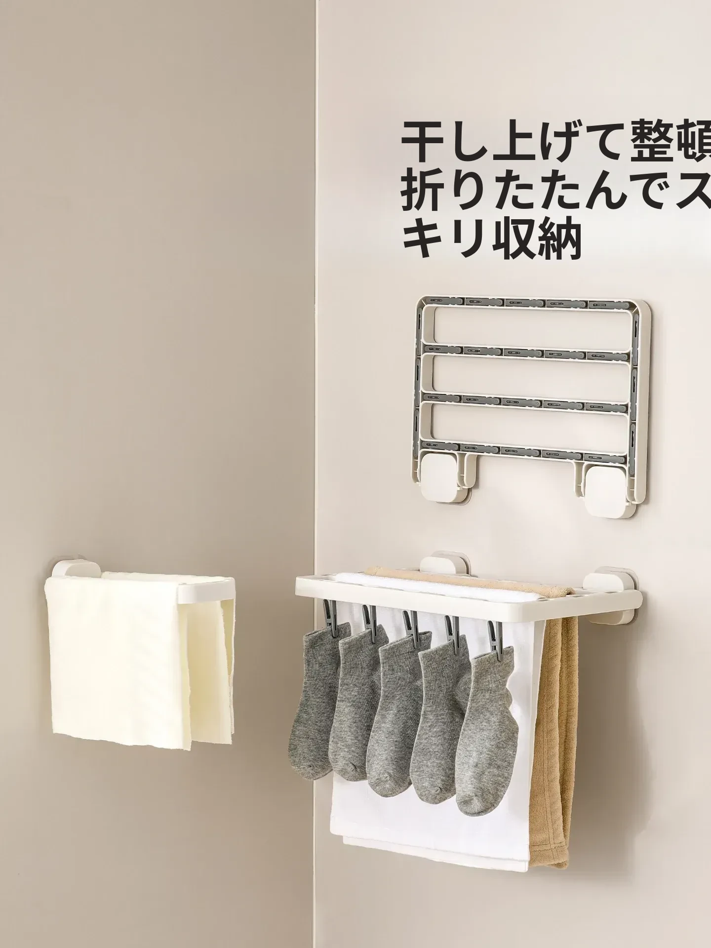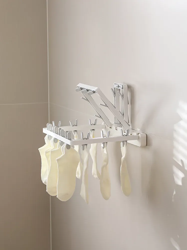 FaSoLa 折りたたみ式物干しラック - 多機能クリップ付き!壁掛けソックス・下着干しに最適!バルコニーでも風にも強く、スペースを有効活用する干し神器!