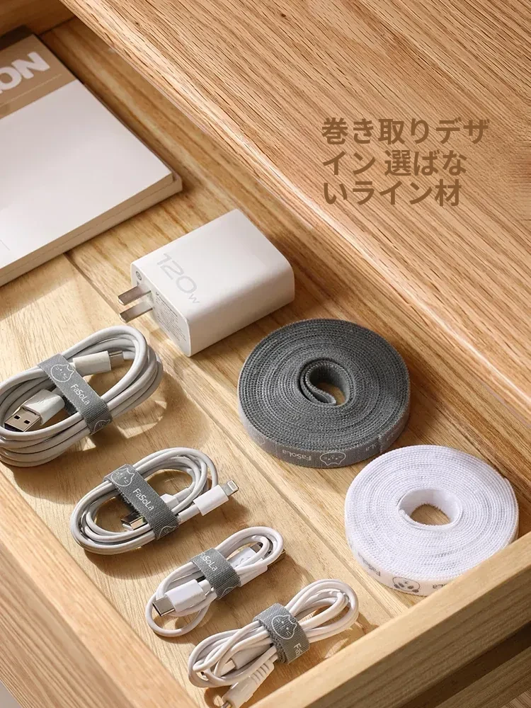 FaSoLaマジックテープケーブル整理バンド - データケーブルやPCケーブルをスッキリ収納!便利な束ねるアイテムで、煩雑な配線を一瞬で解決!おしゃれで実用的なデザインです。