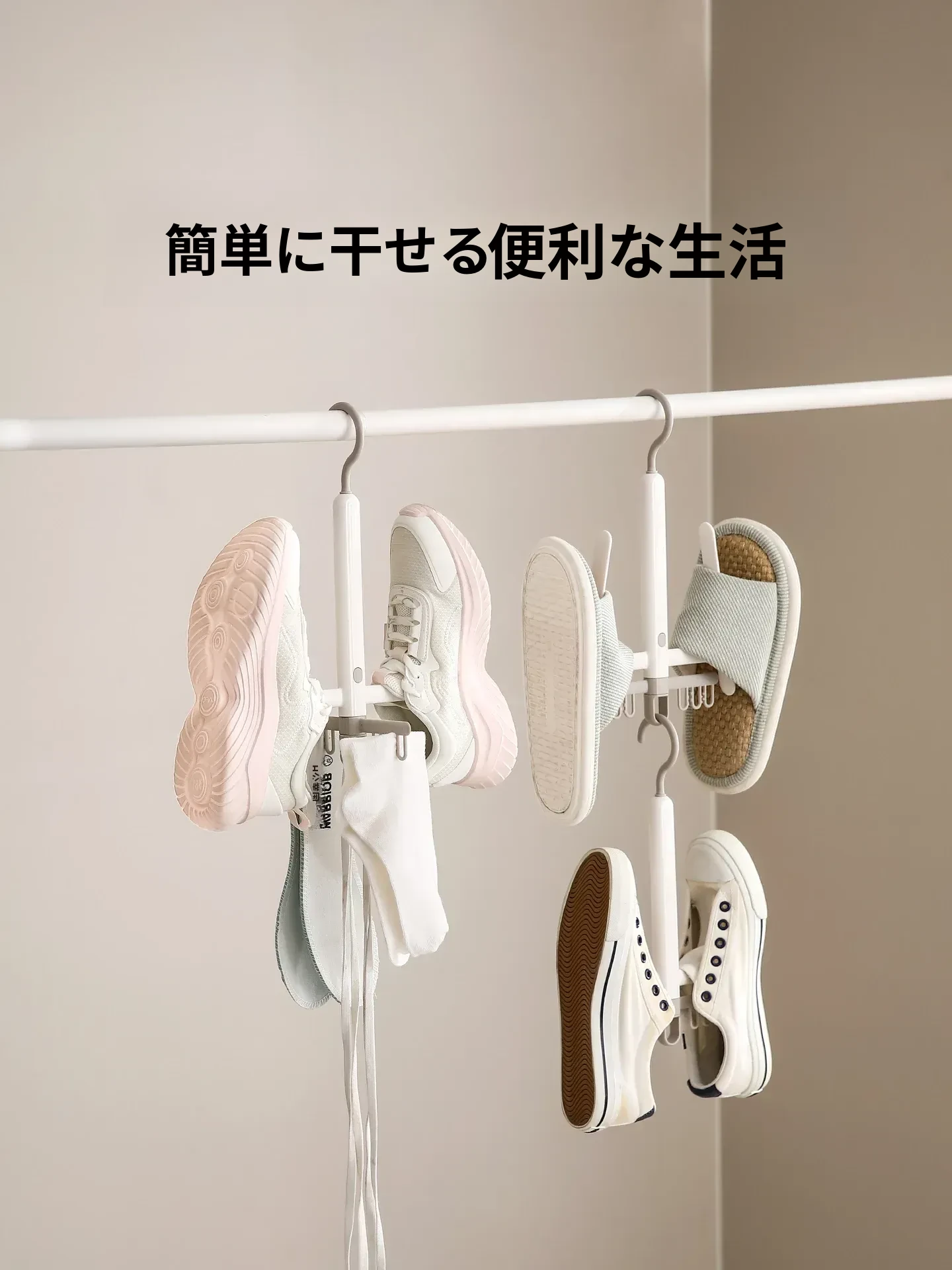 FaSoLa靴子干しラック - 屋外・バルコニー用の簡易防風シューズ乾燥スタンド!多機能収納フック付きで、靴をしっかりと乾かし、スペースを有効活用。おしゃれで便利なシューズハンガーで、快適な生活をサポートします!