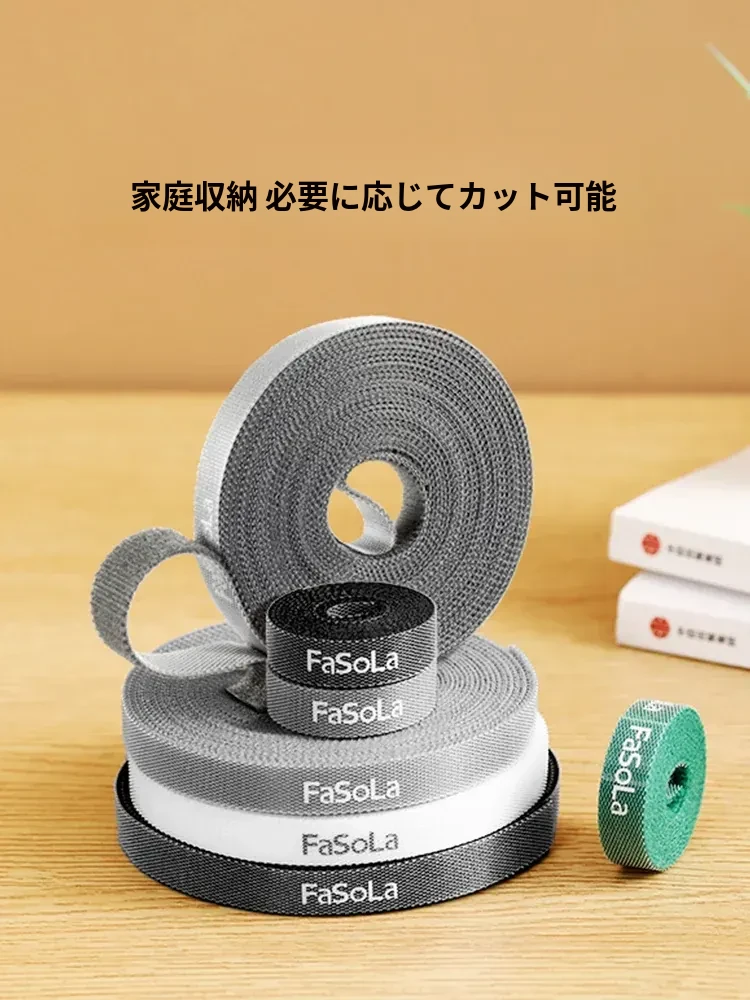 FaSoLaマジックテープケーブル整理バンド - データケーブルやPCケーブルをスッキリ収納!便利な束ねるアイテムで、煩雑な配線を一瞬で解決!おしゃれで実用的なデザインです。