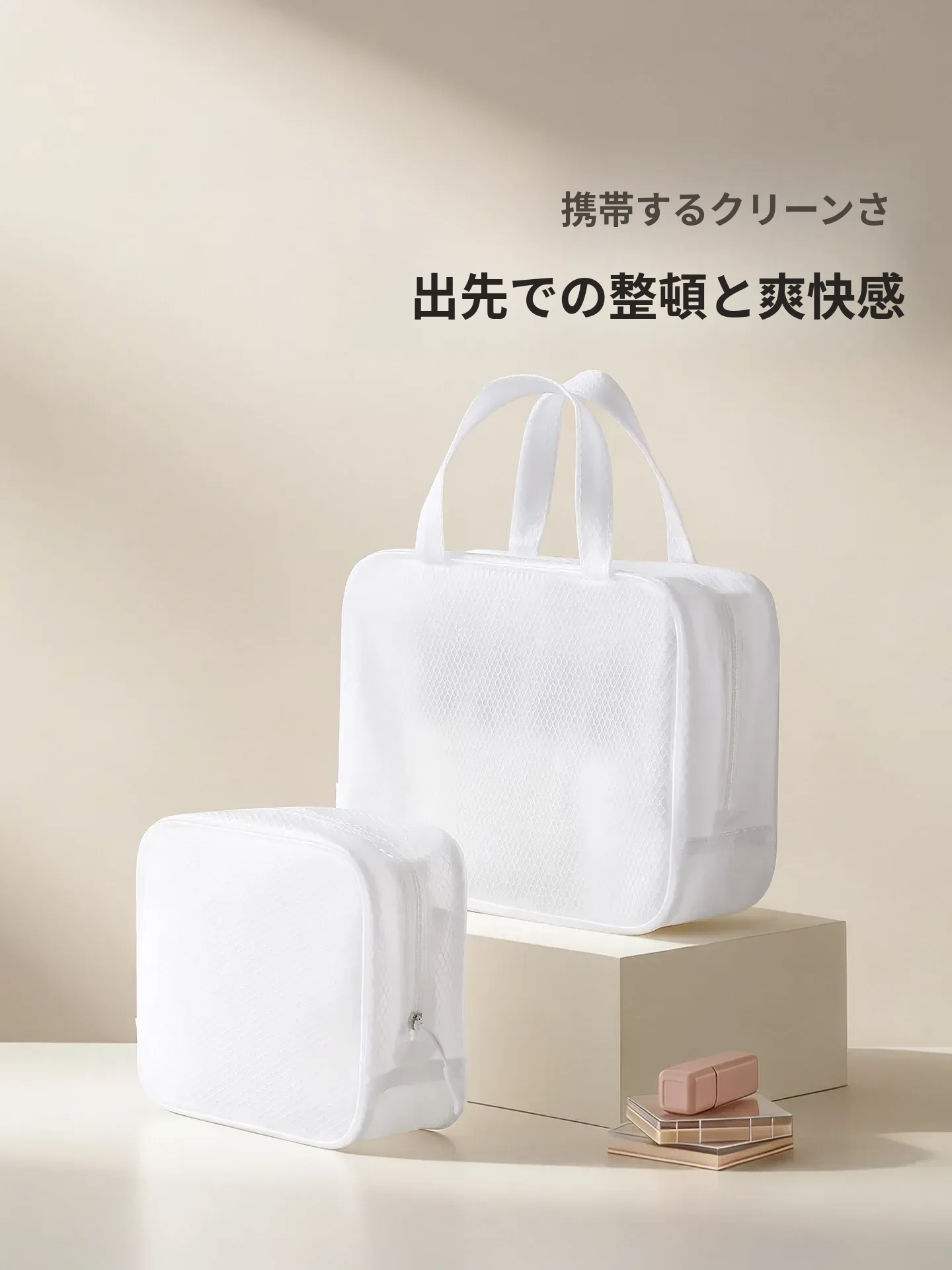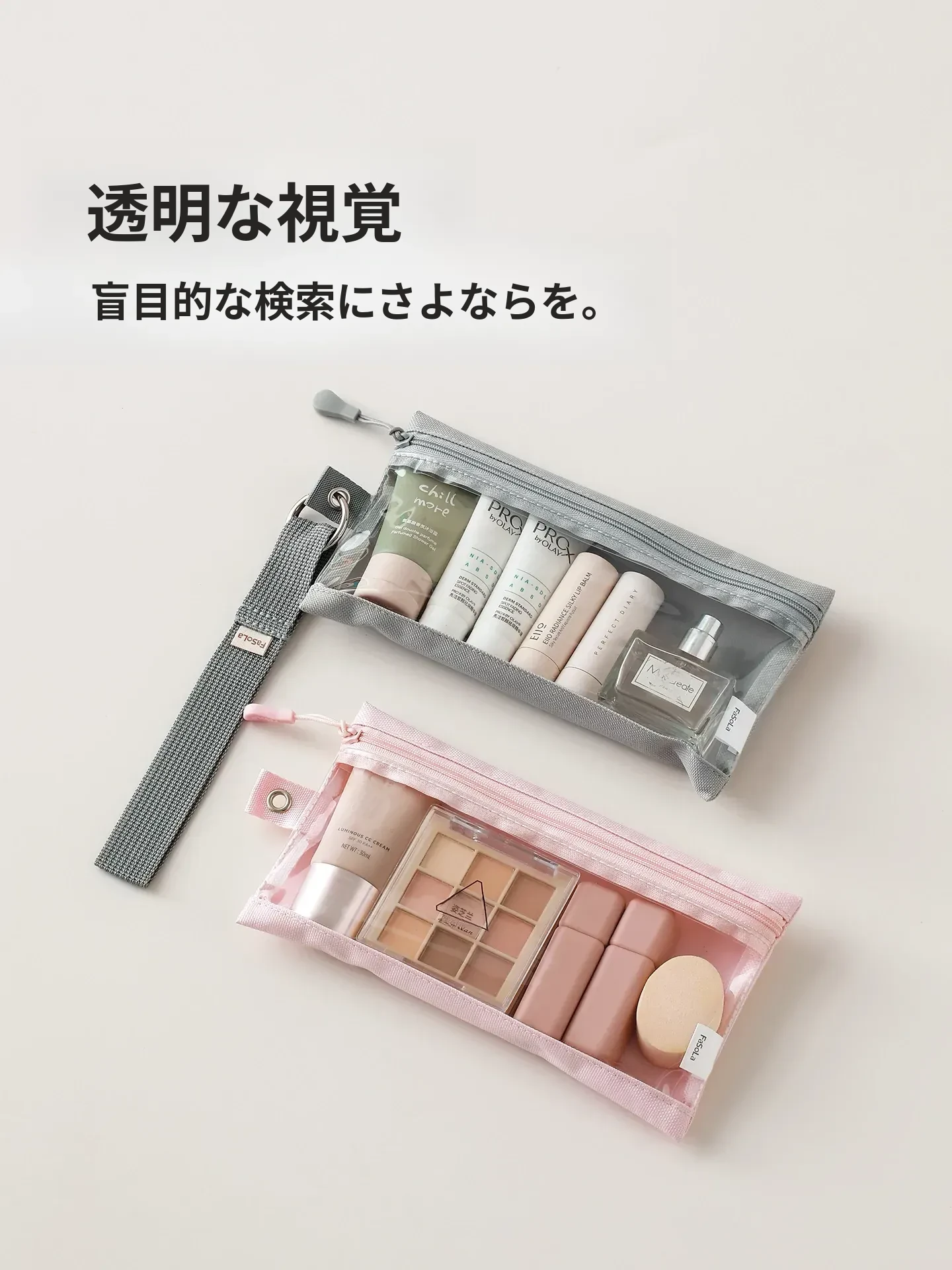 FaSoLa新作!シンプルで便利なストラップ付き収納ポーチ。女性向け化粧ポーチ、出張や旅行に最適な洗面ポーチ。透明で持ち運びも楽々!あなたの必需品をおしゃれに整理整頓。