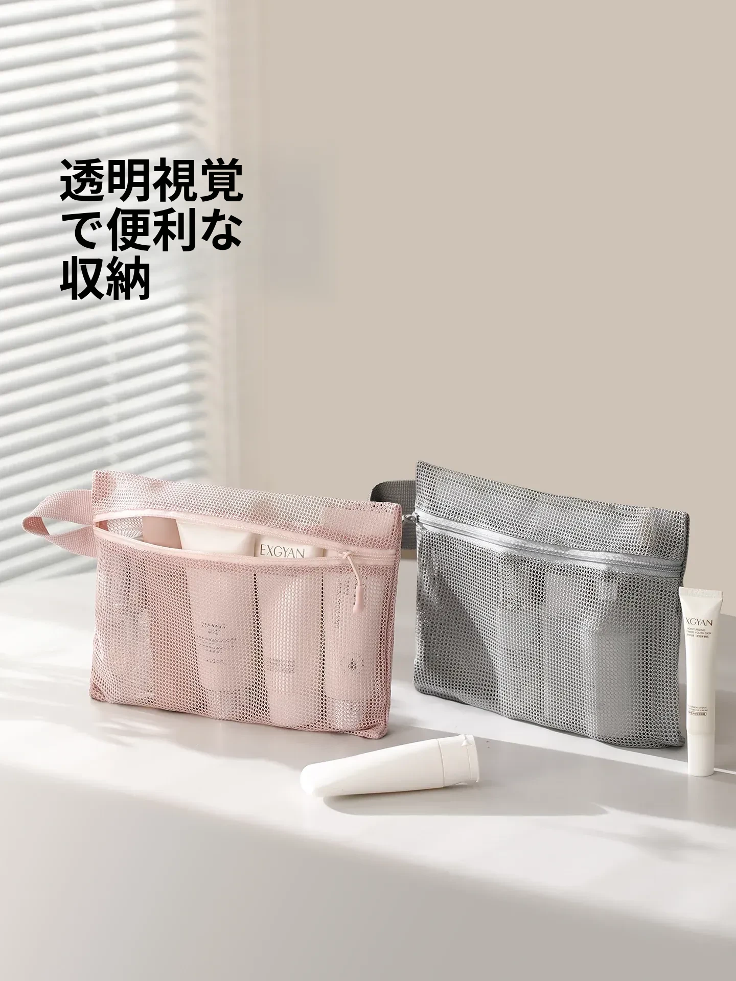 FaSoLa メッシュ収納バッグ 旅行用大容量透明ポーチ 軽量・速乾・持ち運び便利な化粧ポーチ