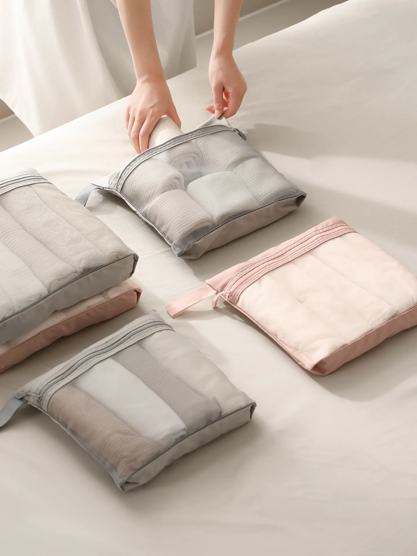 FaSoLa旅行収納バッグ - 圧縮機能付きスーツケース用衣類・下着整理ポーチ!出張や旅行に最適なコンパクトな分割袋で、荷物をスッキリ整理!おしゃれで便利な旅のお供に!
