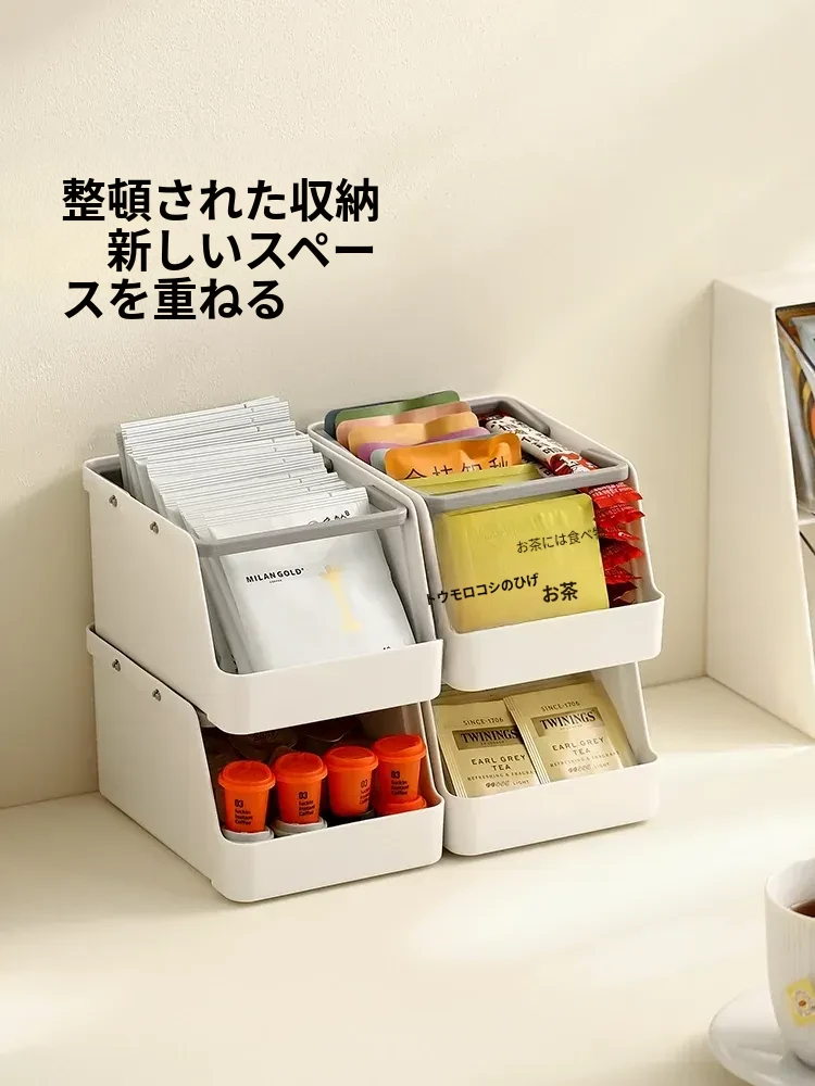 FaSoLaオフィス用ティーバッグ・コーヒーテーブル収納ラック 持ち運び可能な多層スタッキング収納バスケット 雑貨の整理整頓に最適!デスク周りをスッキリと美しく保つアイテムです!