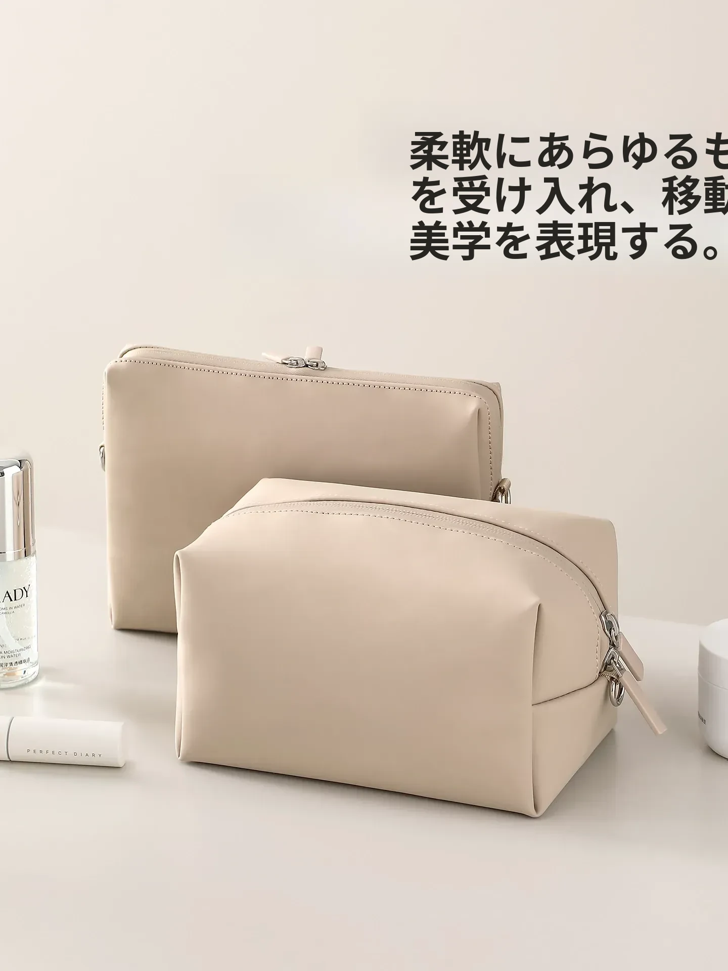 FaSoLa防水レザー旅行収納ポーチ - 化粧品をスマートに整理!出張や旅行に最適なコンパクトデザインで、あなたのビューティーアイテムをしっかり守ります。持ち運びに便利な収納力抜群の一品!