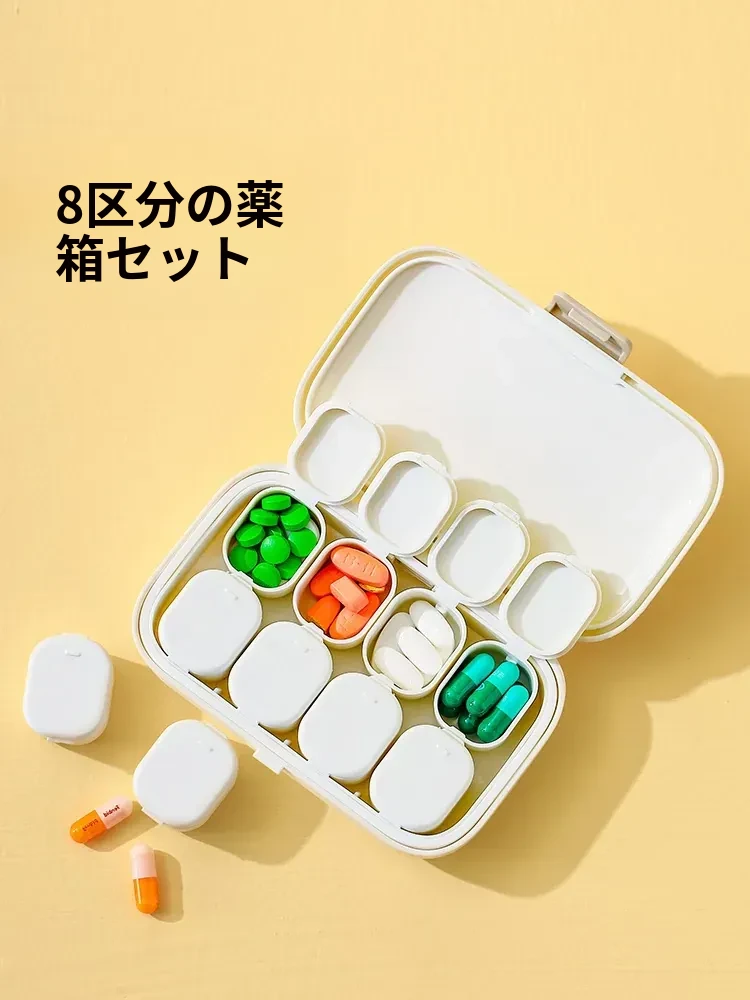 FaSoLa携帯用薬ケース|便利な薬切り器&分割機能付き|一週間分の7つのセクションで、整理整頓も簡単!旅行や日常使いに最適な薬収納ボックス!