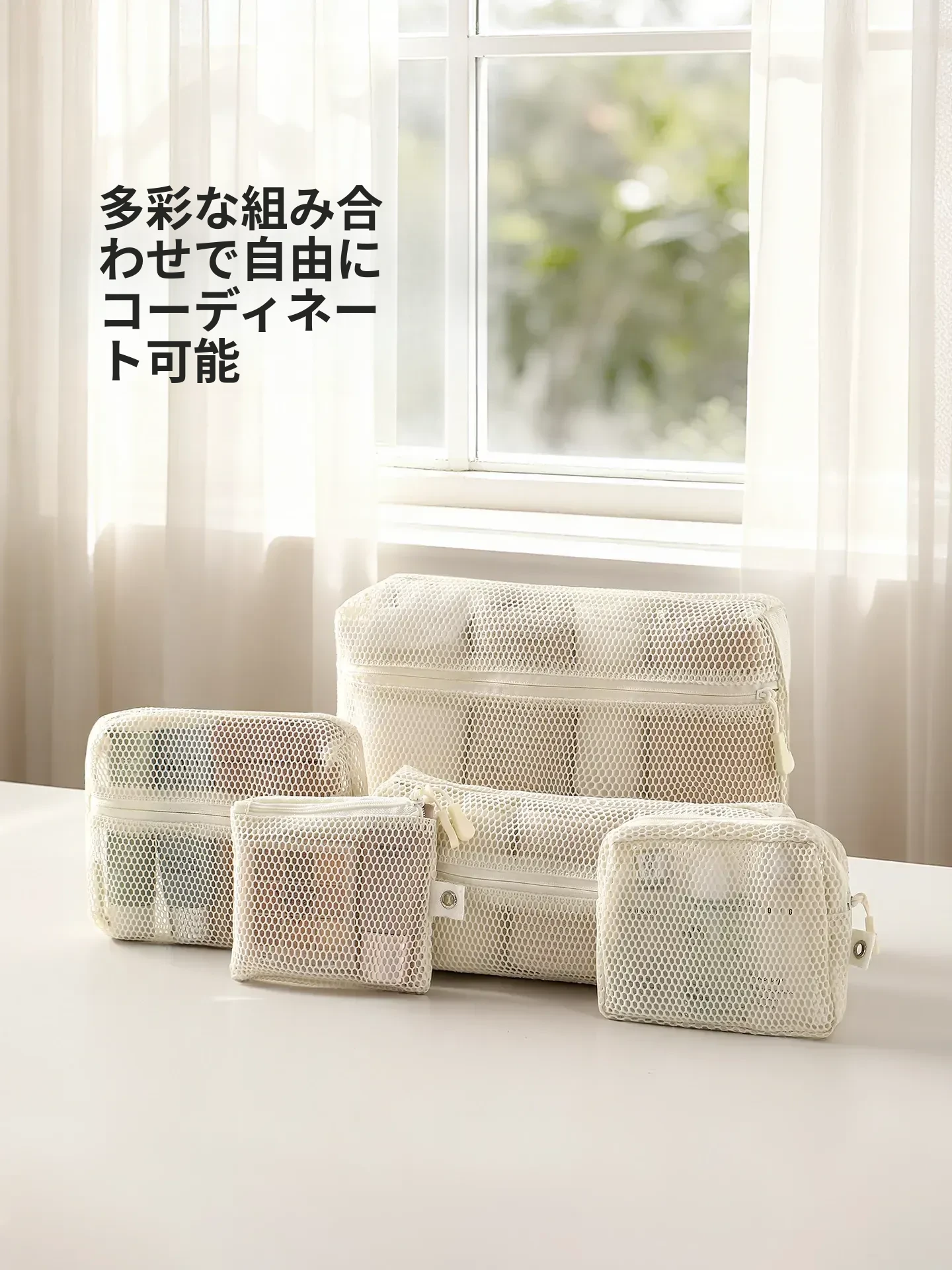 FaSoLa 旅行用化粧ポーチ - 便利なメッシュ収納バッグ!外出時に最適な透明ネット素材、速乾性で洗面用具もスッキリ整理。おしゃれで機能的なデザインで、あなたの旅をもっと快適に!