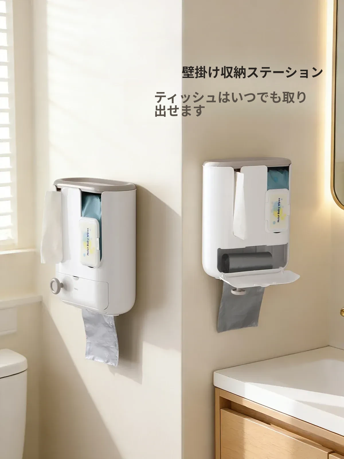 FaSoLa 壁掛けトイレットペーパー収納ボックス - 簡単取り付け、穴あけ不要!おしゃれで機能的なバスルーム収納、家族みんなに便利な抽紙とトイレットペーパーをスッキリ整理!