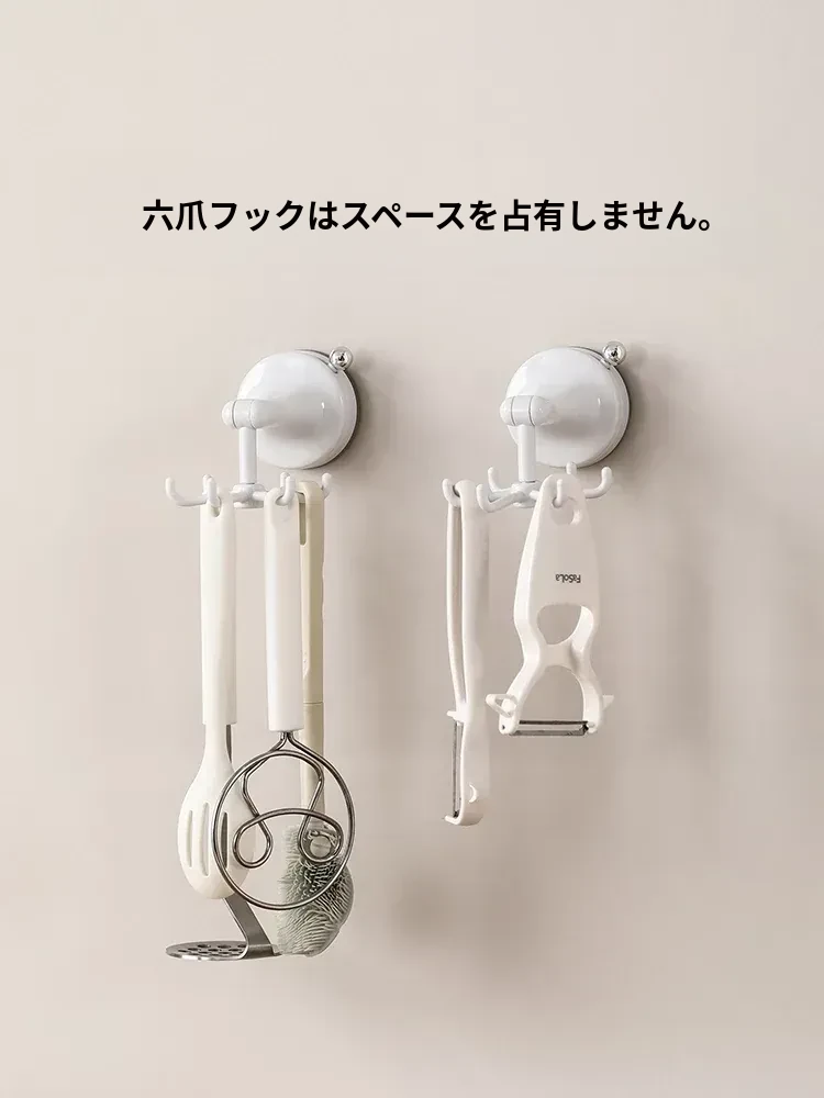 FaSoLa吸盤フック 六爪回転式 壁掛け収納ラック 真空式で穴あけ不要!入居時に便利な家庭用アイテムで、スッキリ整理整頓!