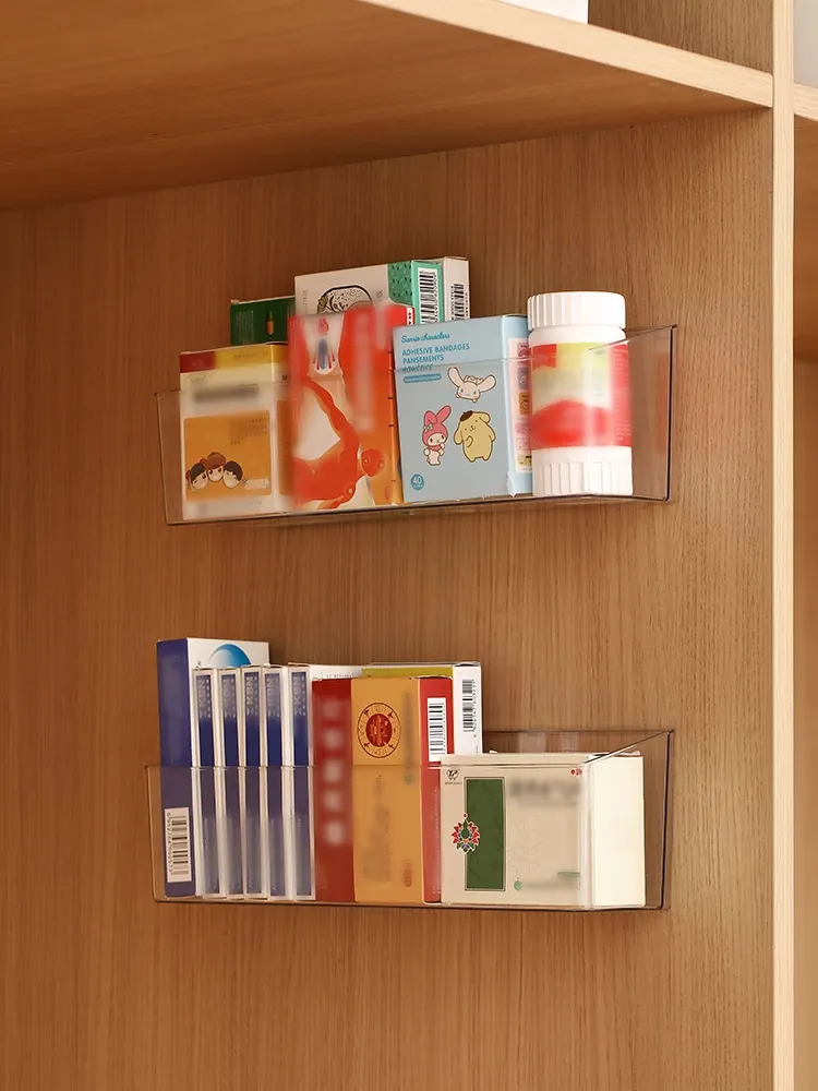 FaSoLa薬収納ボックス 家庭用仕切り付き常備薬箱 扉掛け式 壁掛けタイプ ネジ不要 薬品収納ラックでスッキリ整理!
