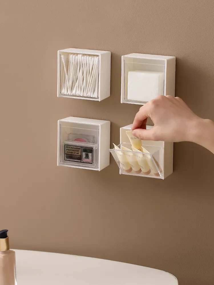 FaSoLaコットンパフ収納ボックス 壁掛け式フタ付き おしゃれなバスルーム用 便利な歯間ブラシ収納も可能!クリーンでスタイリッシュな生活空間を実現するアイデア収納ボックス!