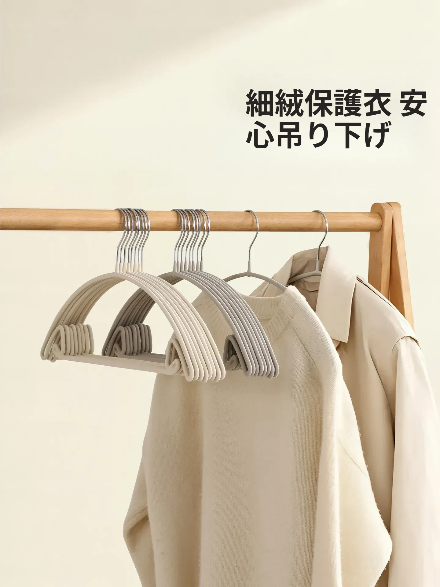 FaSoLa 無痕ハンガー - 肩のラインを美しく保つ!洋服がずれない防滑デザイン、衣類を傷めずにしっかり支える!毛衣やスーツにも最適な幅広設計で、クローゼットをスッキリ整理。あなたの衣類を大切に守ります!