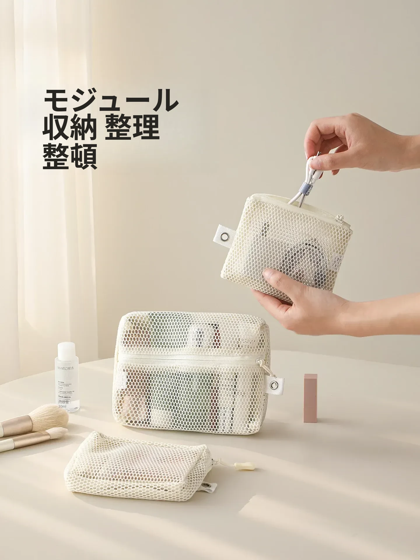 FaSoLa 旅行用洗面道具ポーチ - スイミングや外出に最適な便利なメッシュ化粧収納バッグ!透明デザインで中身が一目瞭然、使いやすさ抜群の小型ネットポーチです。