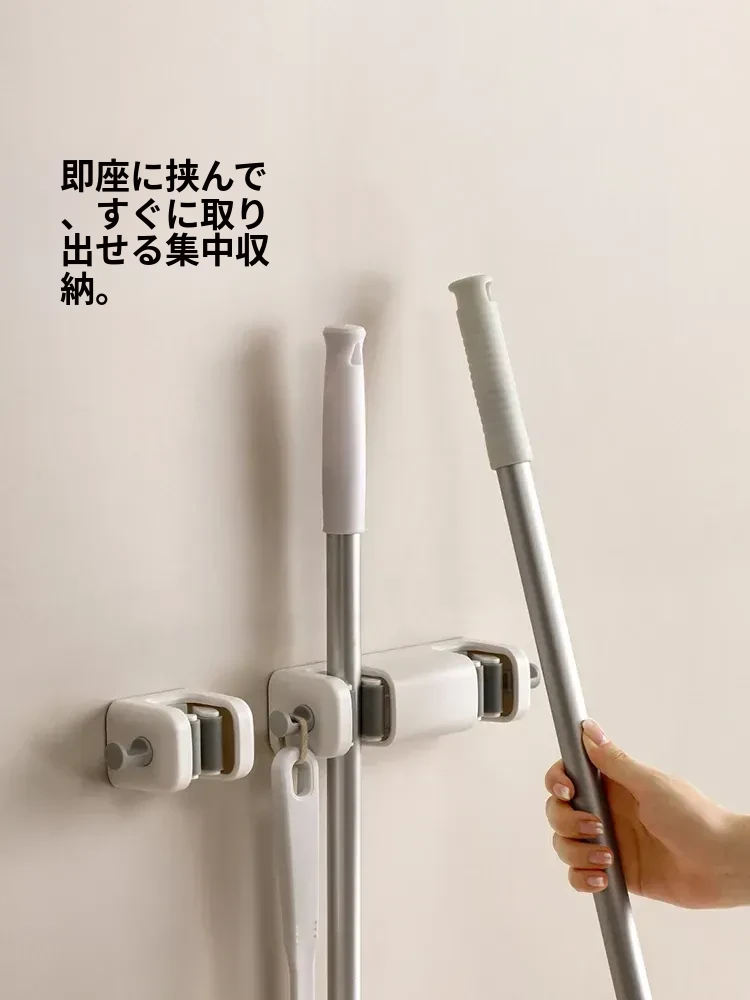 FaSoLaモップフック - DIY不要!強力壁掛け収納クリップで、バスルームやトイレをスッキリ整理!掃除道具をスマートに収納して、快適な空間を実現します。